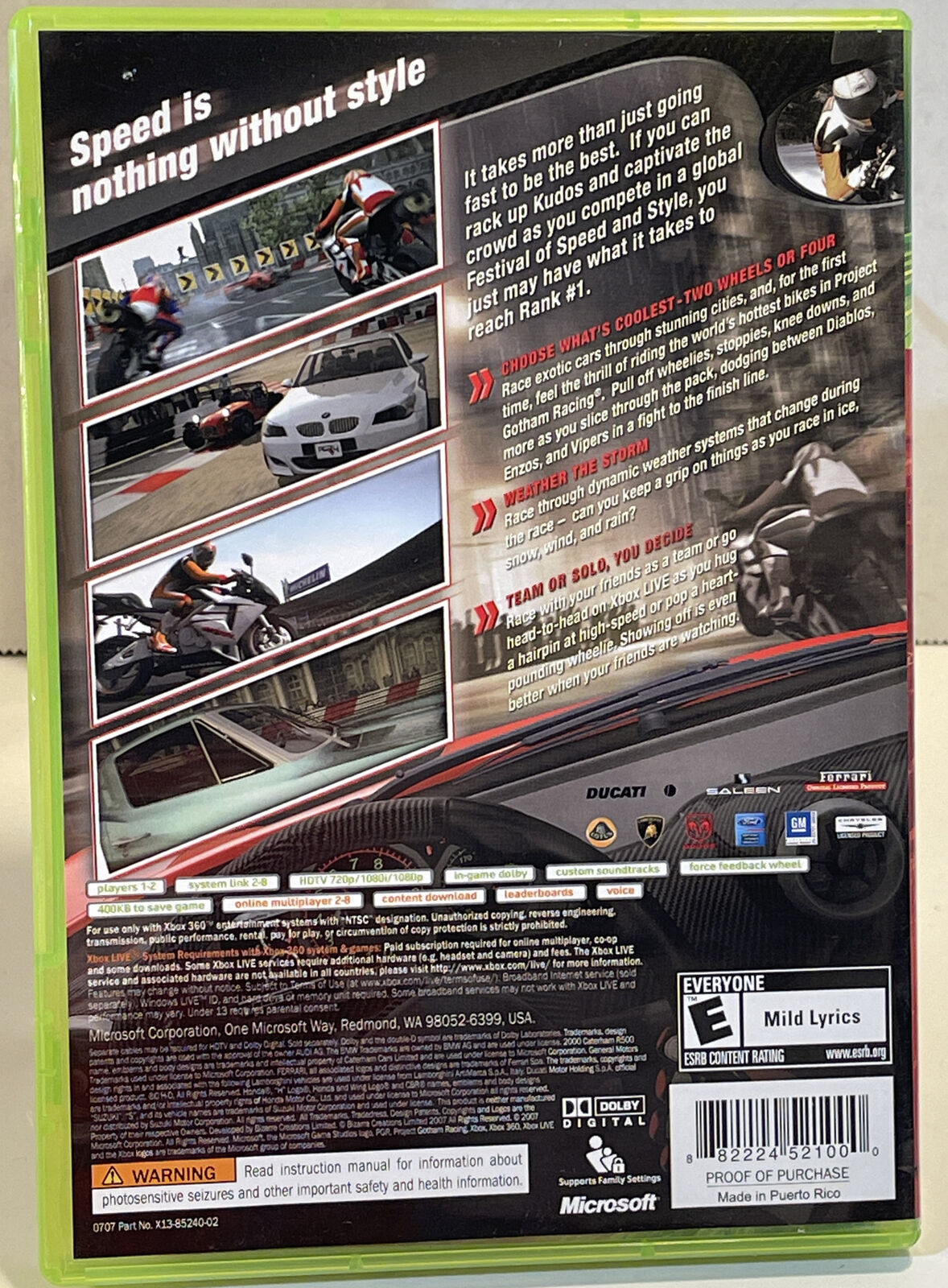 Project Gotham Racing 4 Xbox 360 Game with manual
