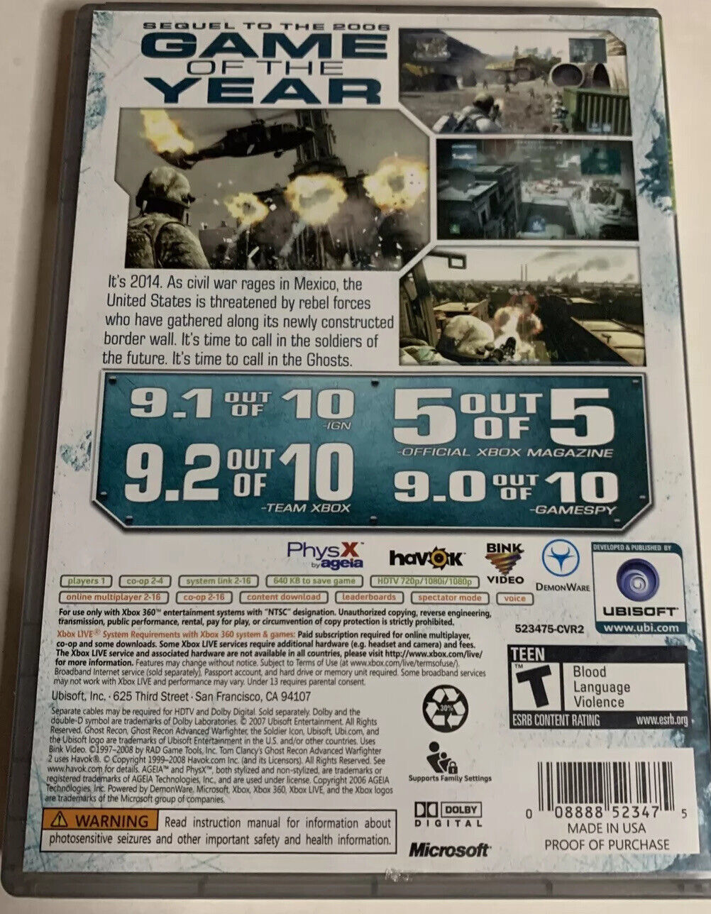 Tom Clancy's Ghost Recon Advanced Warfighter 2 Xbox 360.