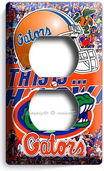 UF FLORIDA GATORS FOOTBALL TEAM LOGO OUTLET WALL PLATE MAN CAVE SPORT BAR DECOR