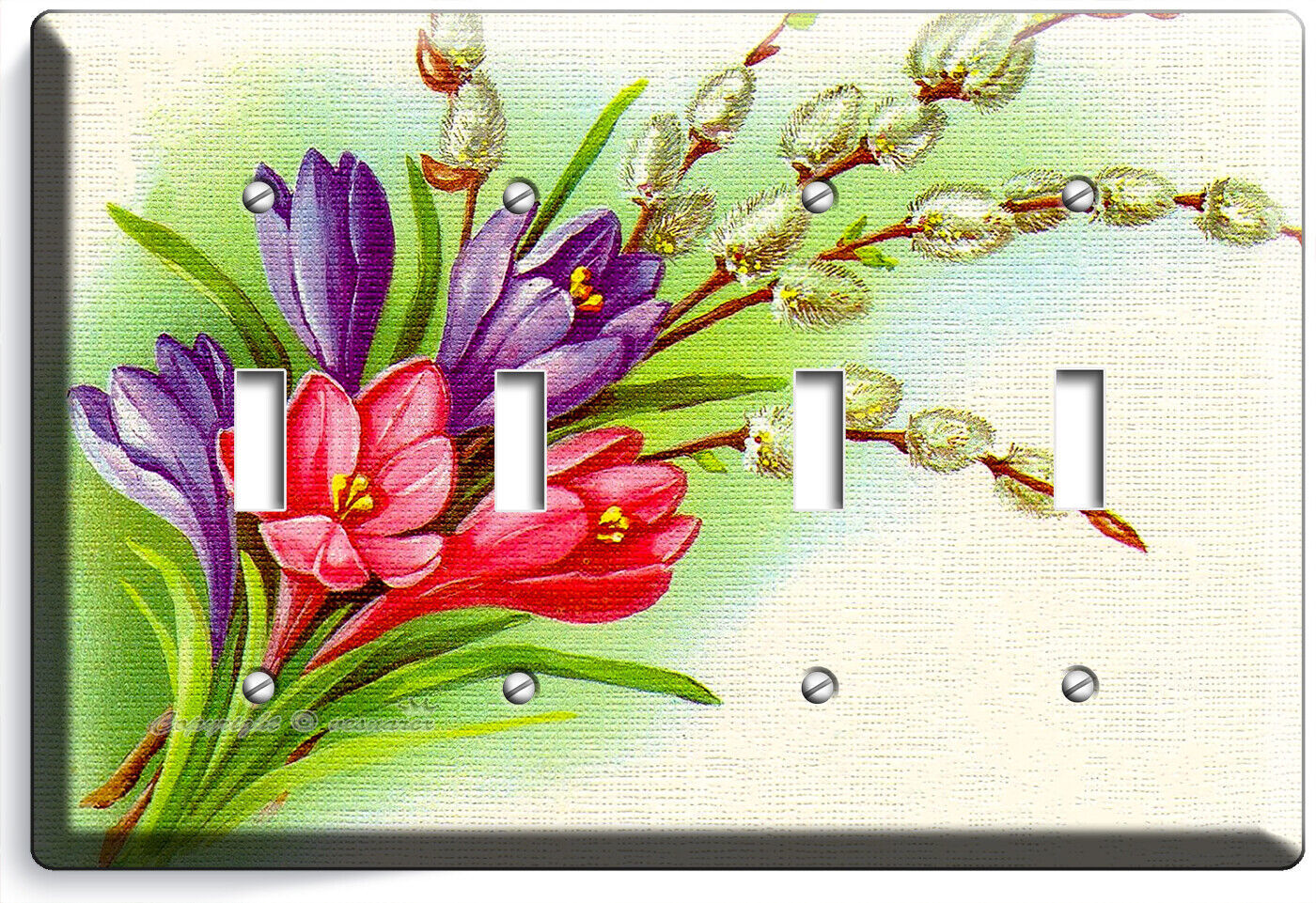 RETRO WILLOW TULIPS FLOWERS LIGHT SWITCH OUTLET WALL PLATE FLORAL ART HOME DECOR