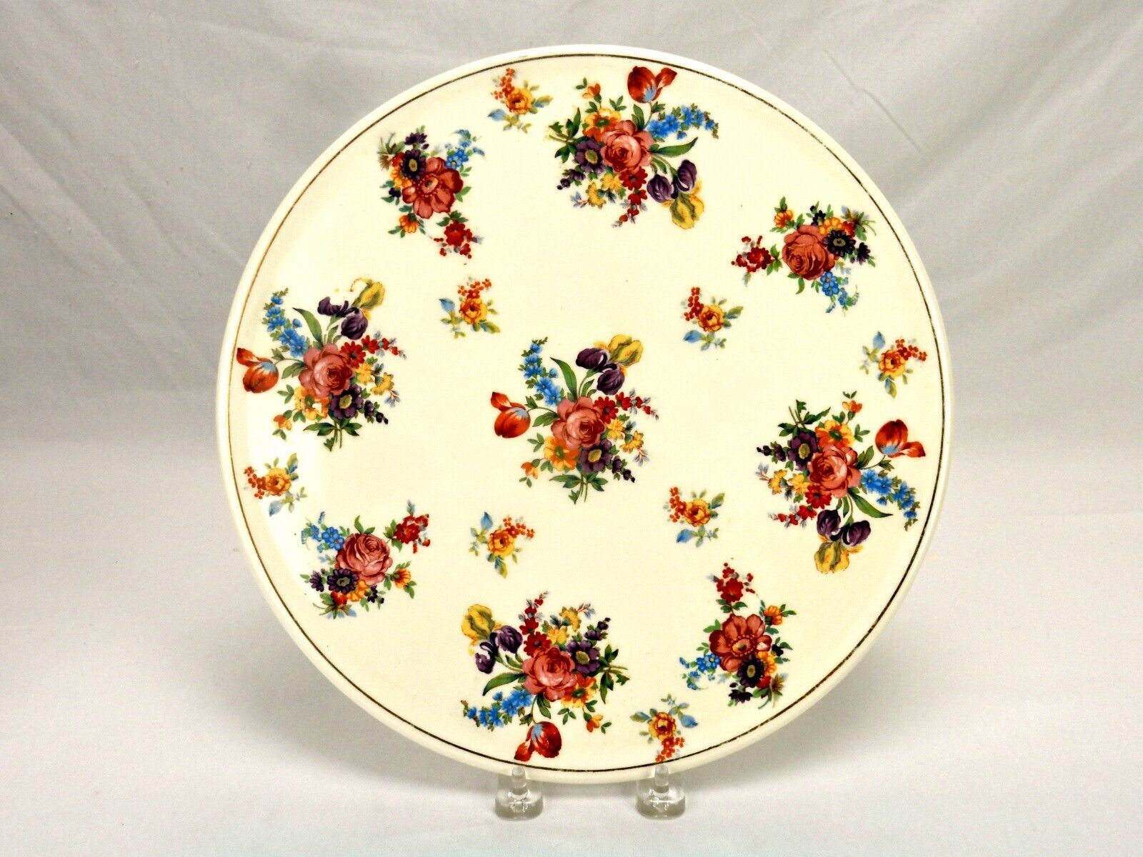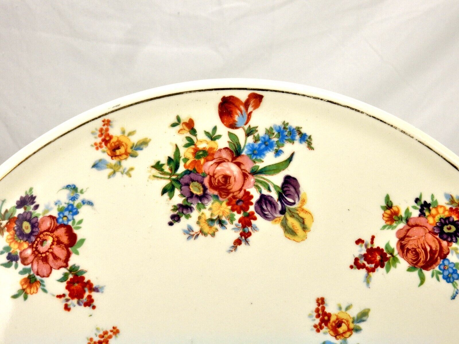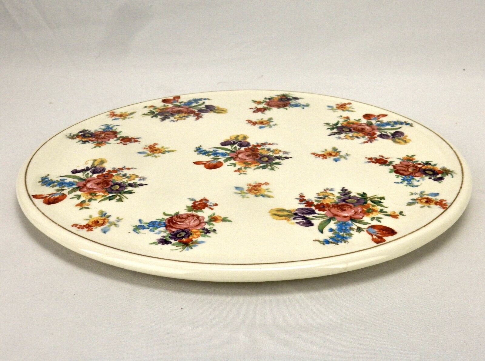 12" Ceramic Trivet, Colorful Blooming Flowers, Gold Trim, Vintage, Made in Japan