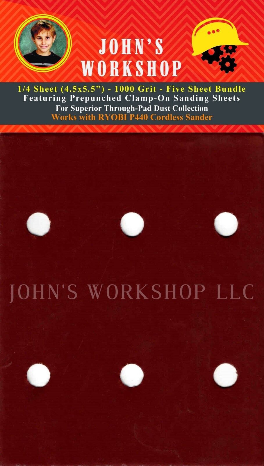RYOBI P440 Cordless - 1/4 Sheet (4.5x5.5") - 1000 Grit - PrePunched - 5 Sheet Sandpaper Bundle