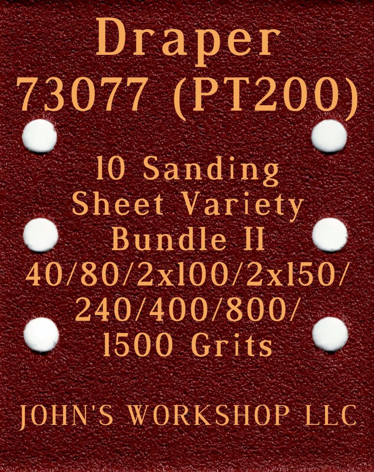 10 Premium Sanding Sheet - Draper 73077 (PT200) - Variety Bundle II