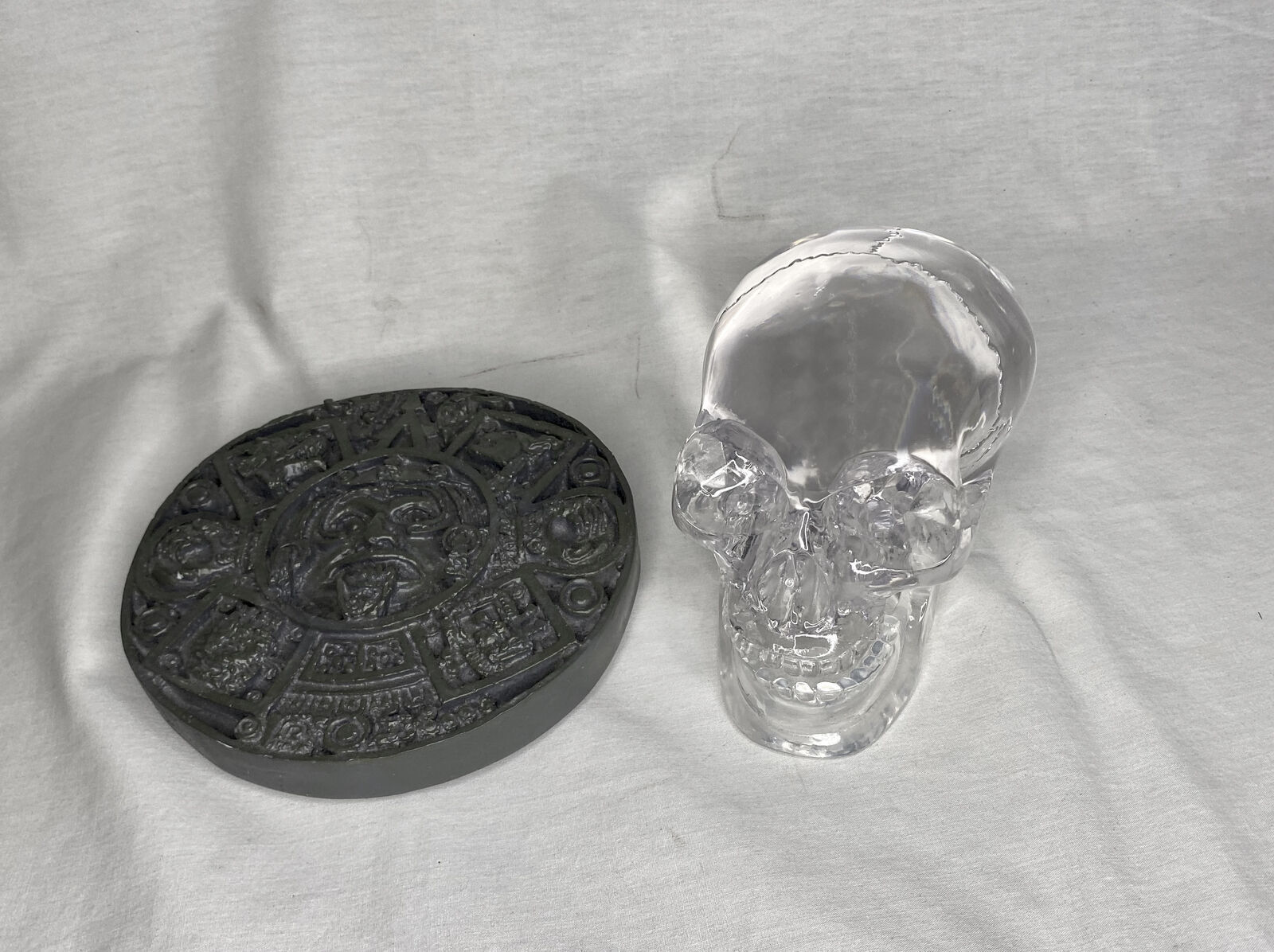 Mitchell Hedges Ancient Crystal Skull Replica, Solid Acrylic, Color Book, Signed