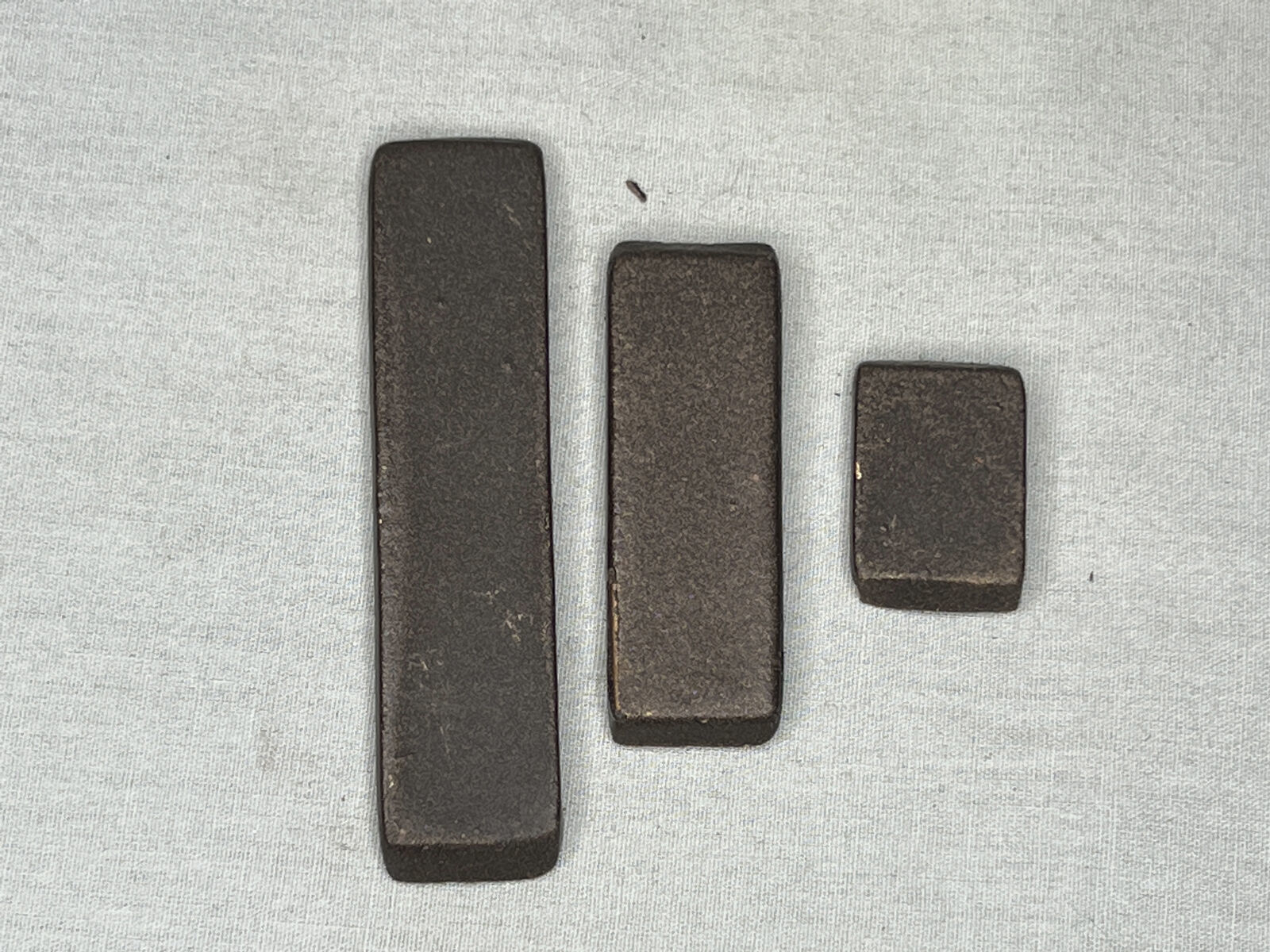 This Star Wars Galactic Bronze Credit Ingot Set comes in Three Different Sizes and are Very Durable. They are all made out of Solid Metal, Bronze in Color, Artistically Aged and measure: Small .5 inch wide x 1 inch long x .13 inch thick, Medium .5 wide x 2 inch long x .13 inch thick, Large .5 inch wide x 2.75 long x .13 inch thick.