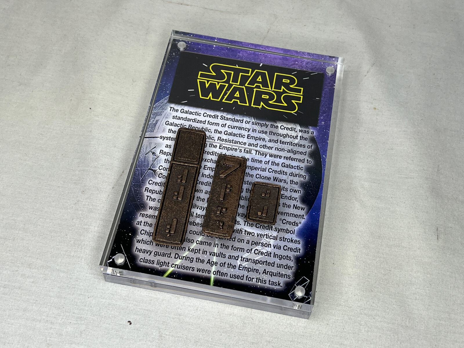 Star Wars Galactic Bronze Credit Ingot Set, Display Plaque, Item Stand, Metal