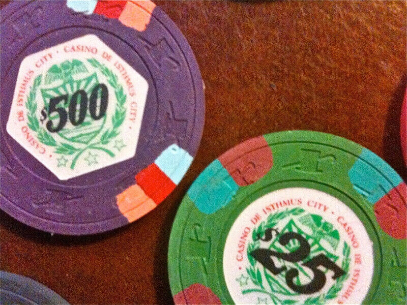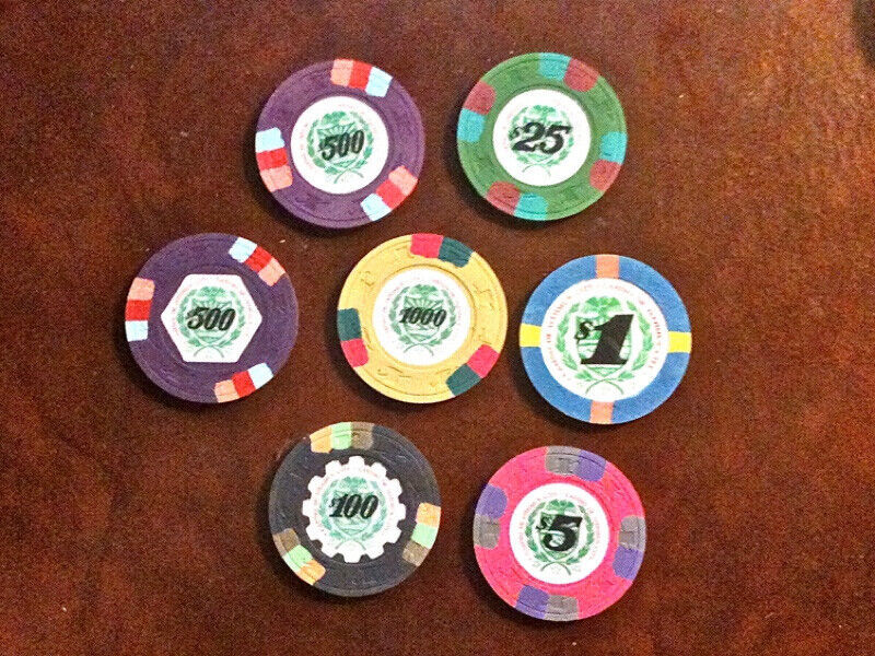 From the 007 James Bond thriller "Licence To Kill (1989)" these are Real Clay Prop Gambling Chips from the fictitous "Casino De Isthmus City." They are availible in six different denominations ($1, $5, $25, $100, $500, $1000) are in mint condition. The Real Prop Chips are distinguishable from the replica ones by the Top Hat and Cane icon that appears around the rim. Even though the same company manufactured the Clay chips this is what makes them different.These prop chips can be seen in the opening title sequence of the film. These chips were originally obtained from Richard Wilson (Owner of Norma Jeans). they come with a Letter of Authenticity. You get your choice of one chip denomination. If you buy more than one you can mix or match. Choose your choice in the check boxes above.