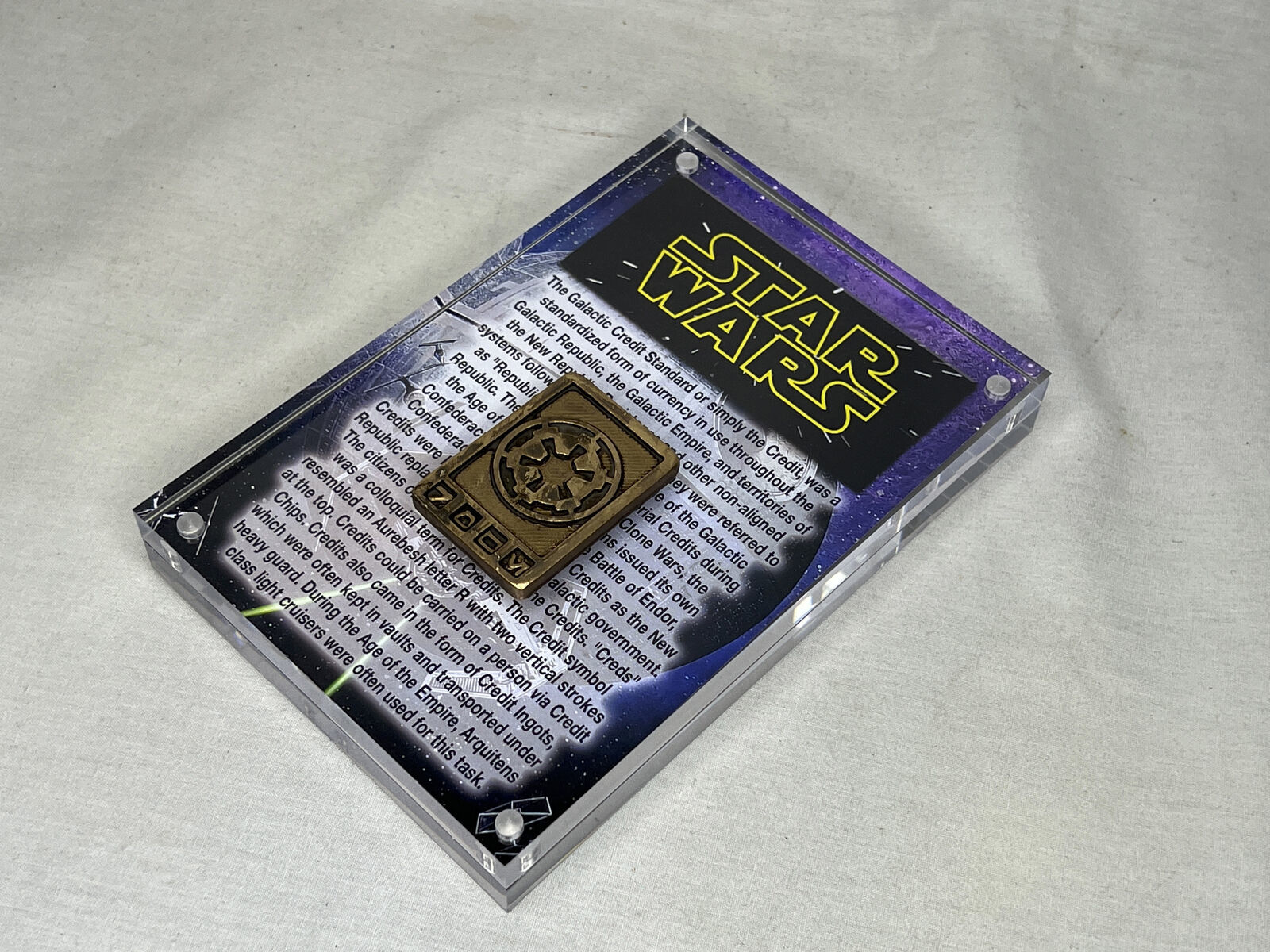 Star Wars Galactic Gold Credit Chip Piece, Display Plaque, Real Prop Replica