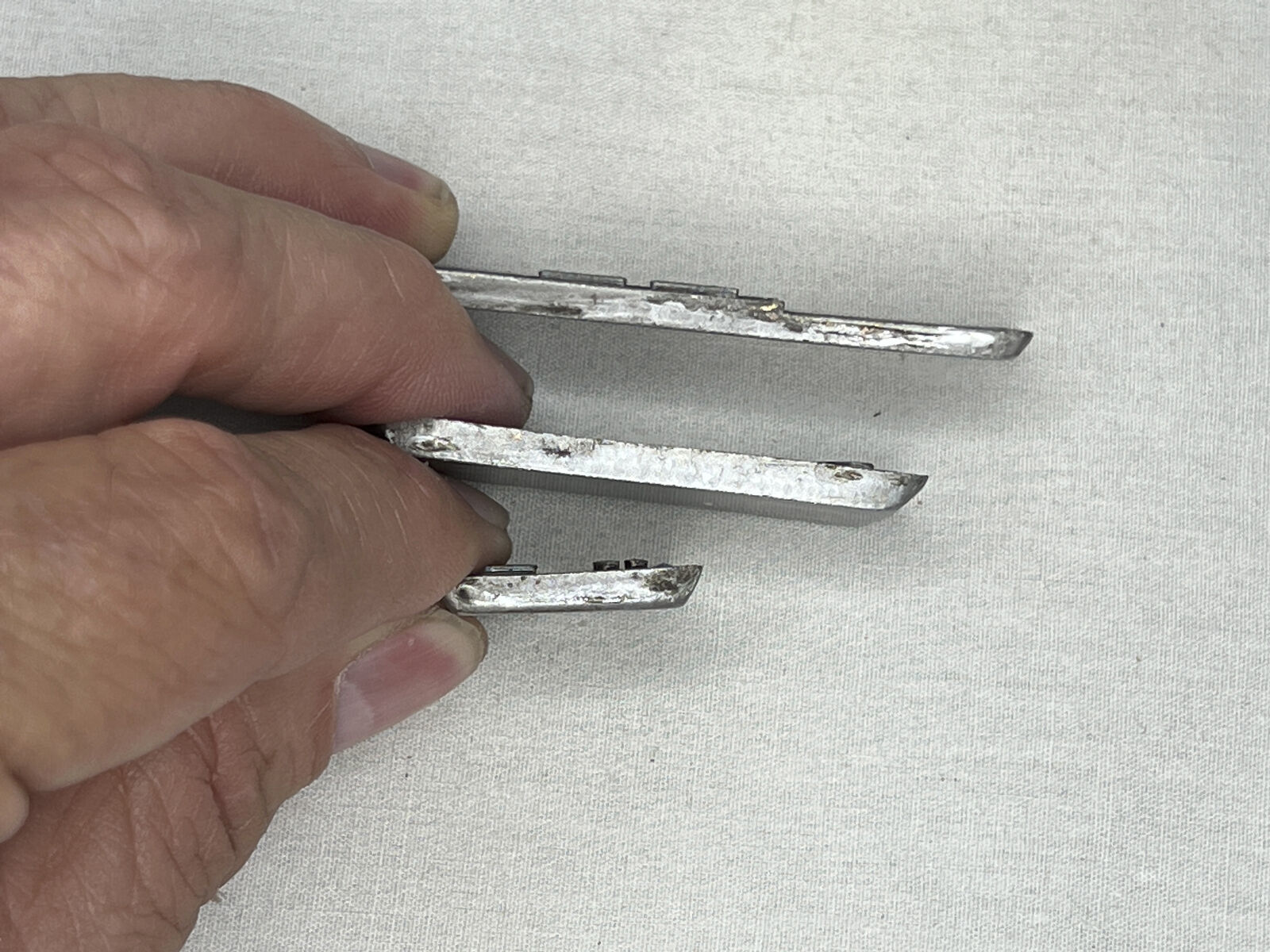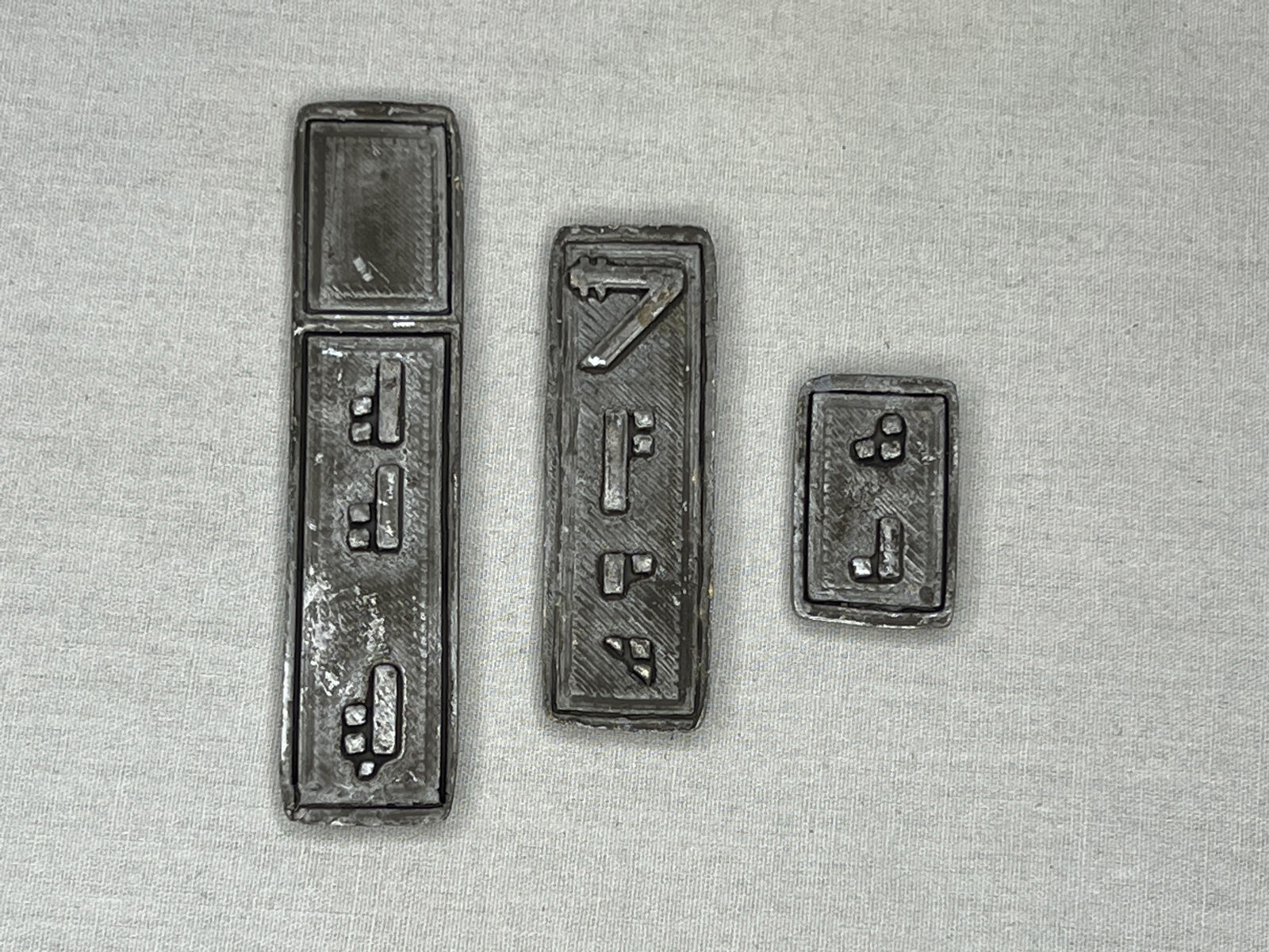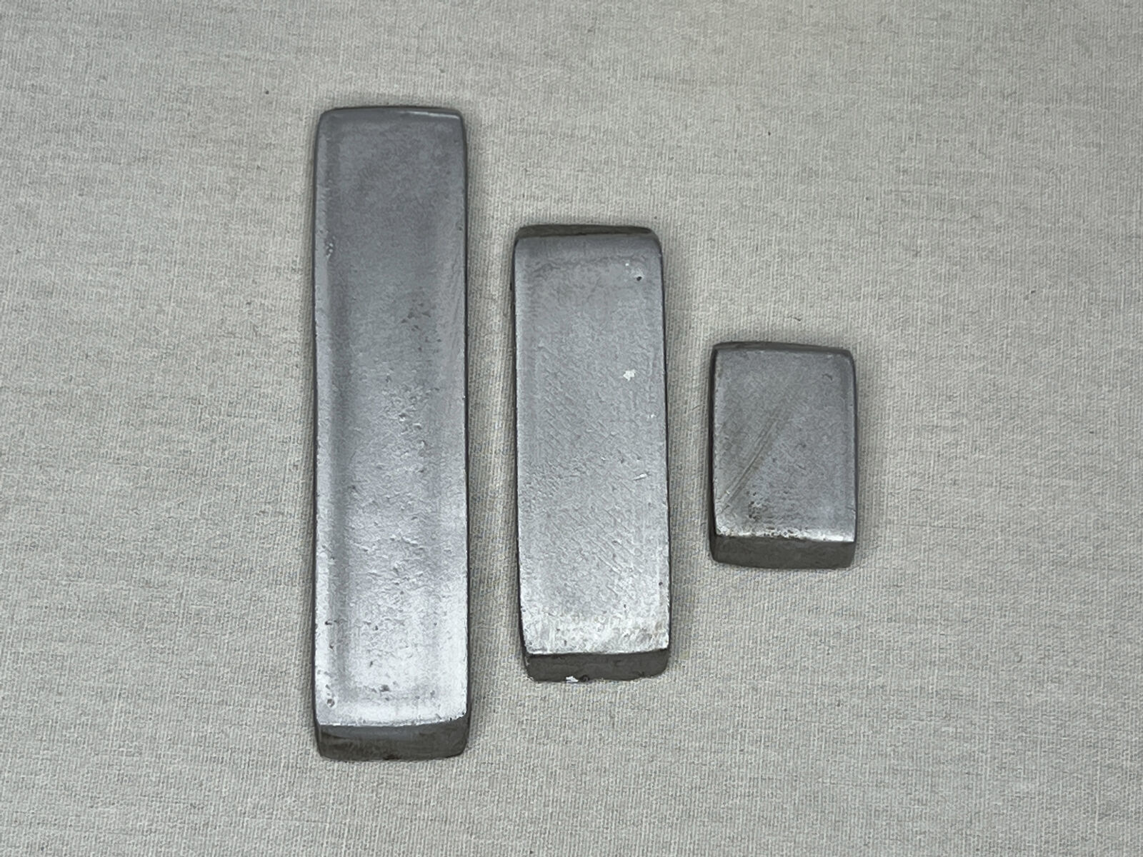 This Star Wars Galactic Silver Credit Ingot Set comes in Three Different Sizes and are Very Durable. They are all made out of Solid Metal, Silver in Color, Artistically Aged and measure: Small .5 inch wide x 1 inch long x .13 inch thick, Medium .5 wide x 2 inch long x .13 inch thick, Large .5 inch wide x 2.75 long x .13 inch thick.