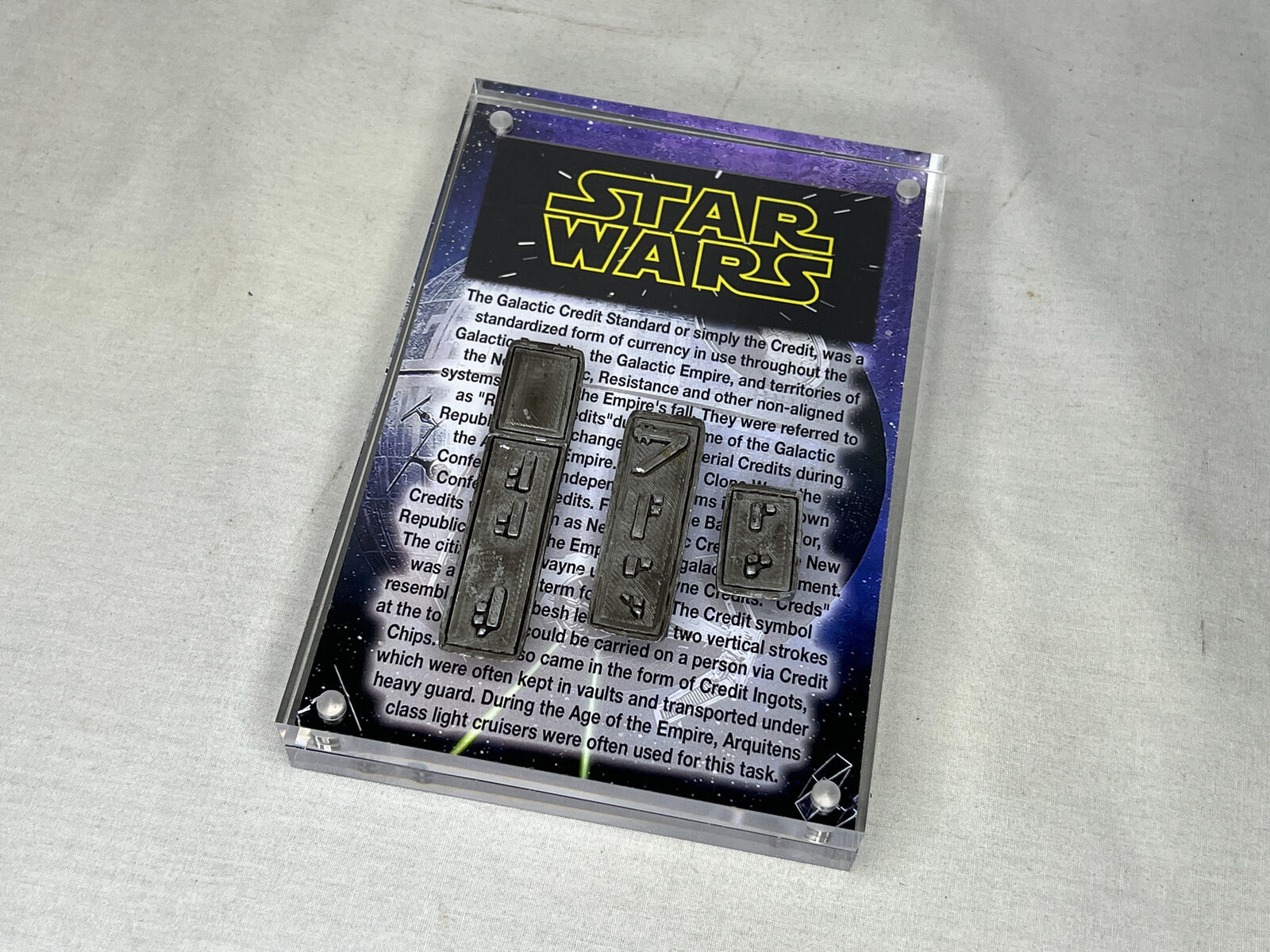 Star Wars Galactic Gold Credit Ingot Set, Display Plaque, Item Stand, Metal