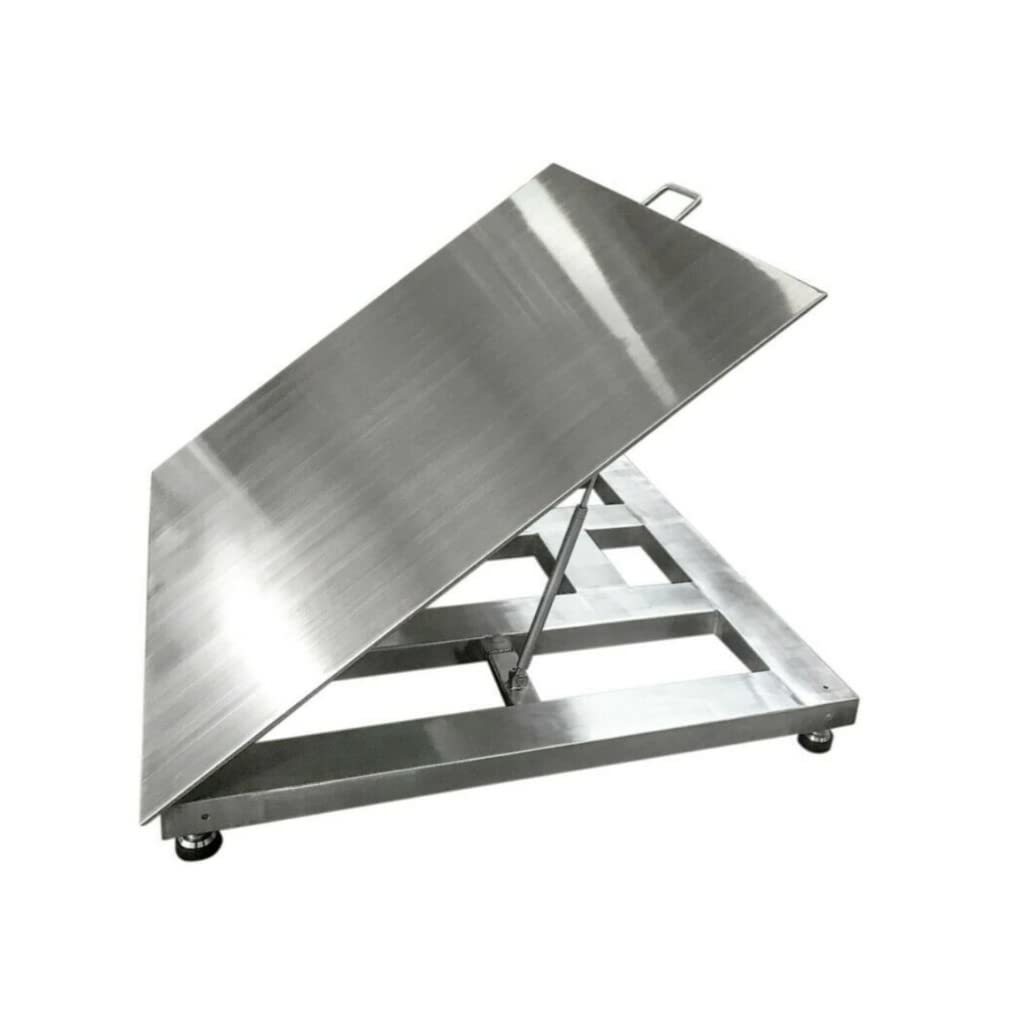 Heavy-duty stainless steel construction Deck Thickness: 3/16" NTEP Washdown lift upscale Built for pit or above ground use Stainless steel gas spring shocks Lift up diamond plated top platform Easy lifting of heavy duty deck for washdown cleaning Includes a NEMA 4 washdown indicator with lb/kg measurements and rechargeable battery option Built-in RS-232 communication port 20 long heavy duty metal shielded cable for indicator Factory Calibrated Overload Protection 2-year warranty on parts Indicator Features SL-7510 NTEP indicator with LED display 1" Tall backlit display Optional Rechargeable battery (up to 100 hrs) Metal casing AC adapter included Multiple weighing units: (lb/kg/g/oz/lb:oz) Gross/Tare/Pre-Set Tare/Zero Multiple Hold functions Count weighing Accumulation weighing Overload / Underload alarm Splash-proof keyboard and display Connects to a remote display and printer NTEP approved for 5,000 divisions Displays up to 50,000 graduations Full Duplex RS-232 Serial Port Stainless steel indicator for outdoor use available upon request