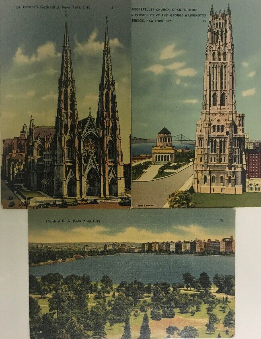 Lot 3 Church, Cathedral, & Central Park in New York City, NY Vintage Postcards