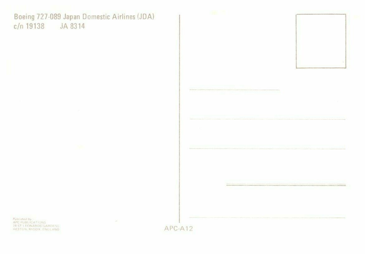 Japan Domestic Airlines Boeing 727 089 Airplane Postcard