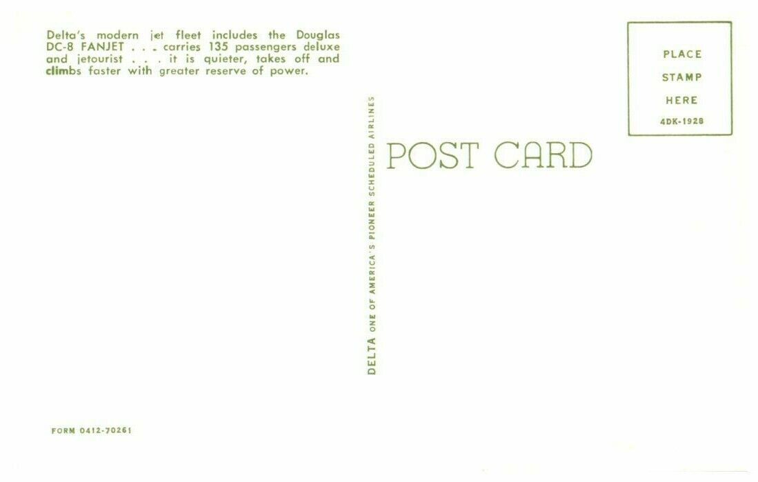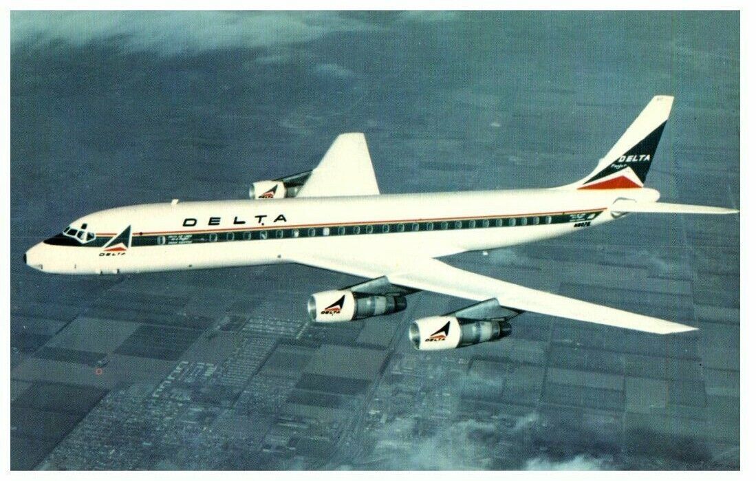 Delta Air Lines Douglas DC 8 Fanjet Airplane Postcard