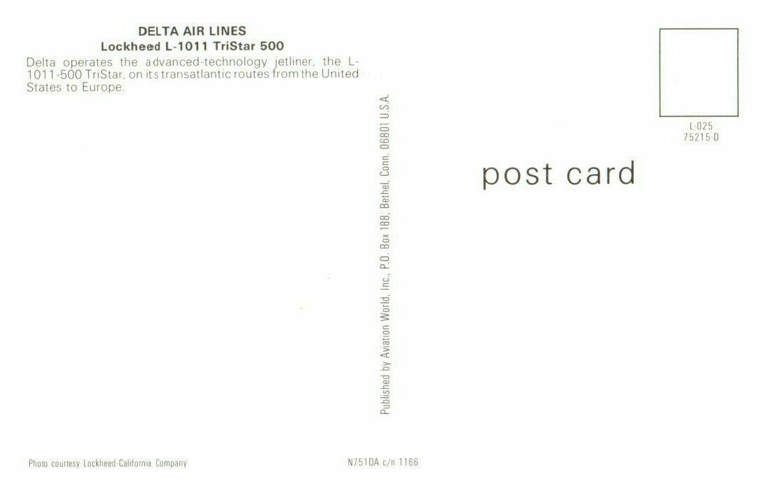 Delta Air Lines Lockheed L 1011 TriStar 500 Airplane Postcard