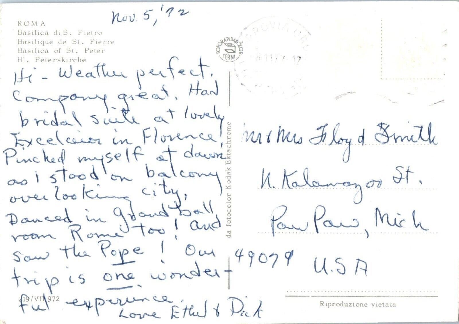 Bailica of St Peter Rome Italy Postcard Posted 1972
