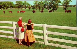 Blue Grass Farm w Horse People Watching on FenceKentucky Postcard