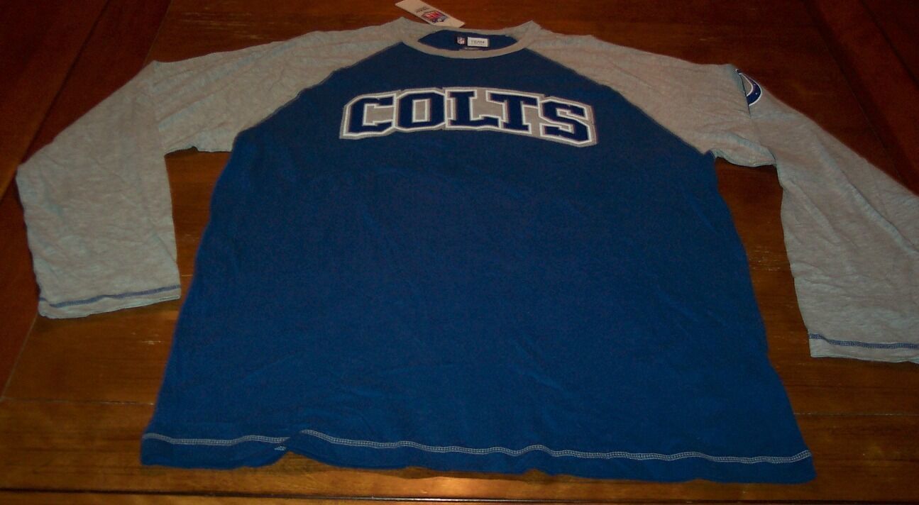 This is a INDIANAPOLIS COLTS NFL FOOTBALL Long Sleeve T-Shirt. It is a size XL and it is NEW w/ TAG. It is 25 inches from armpit to armpit and 32 inches in length. It is an official NFL TEAM APPAREL Shirt. Combine auctions to save on shipping. D2AF