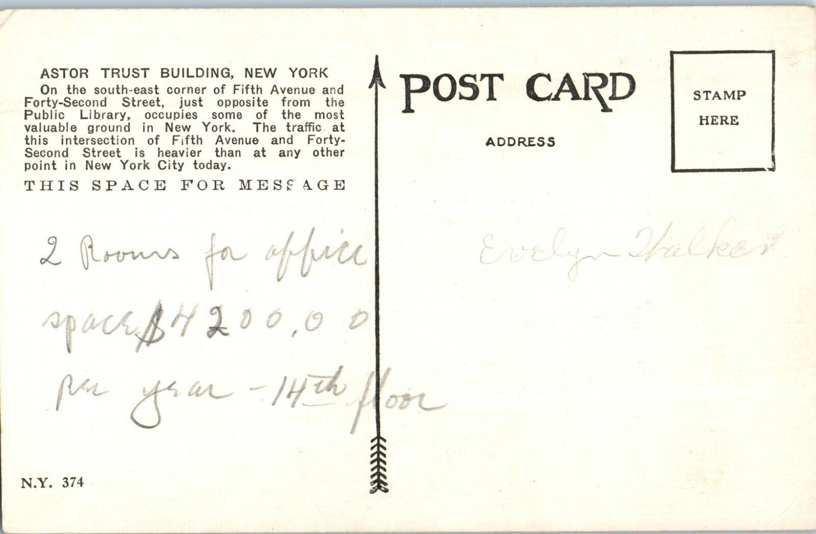 Astor Trust Building Fifth Avenue at 42nd Street New York Postcard