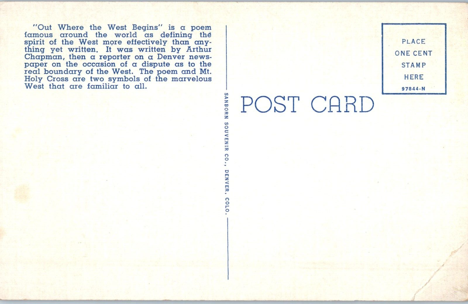 Out Where the West Begins Poem and Mount Holy Cross Colorado Postcard