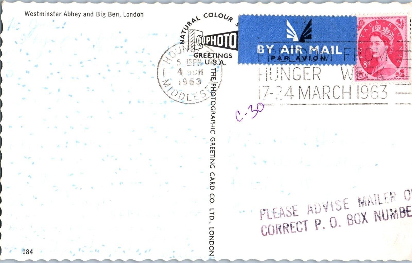 Westminster Abbey and Big Ben London England Postcard Posted 1963