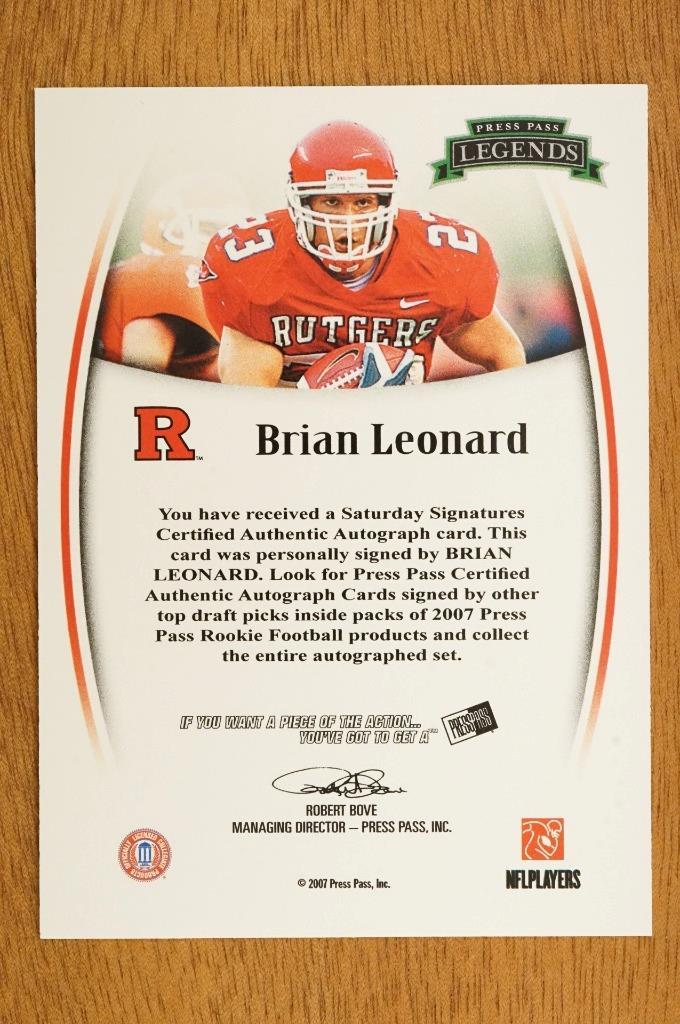 2007 Press Pass Legends Saturday Signatures Brian Leonard Autograph Rutgers