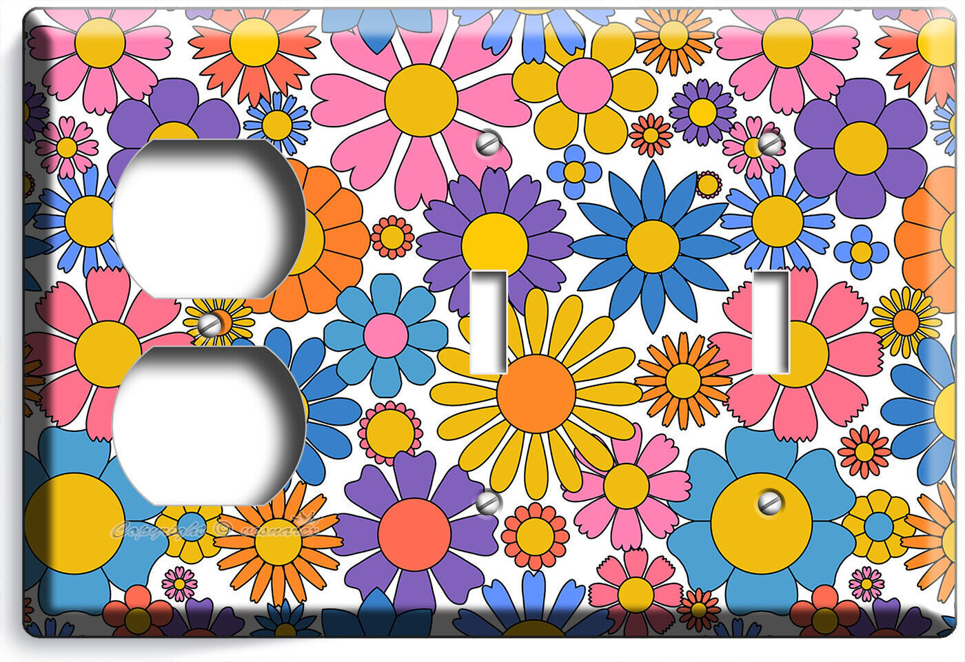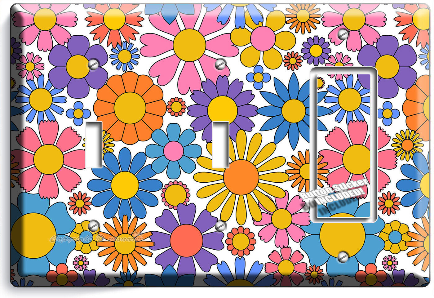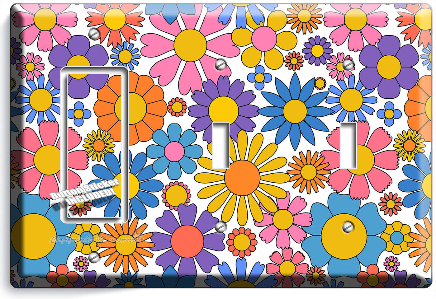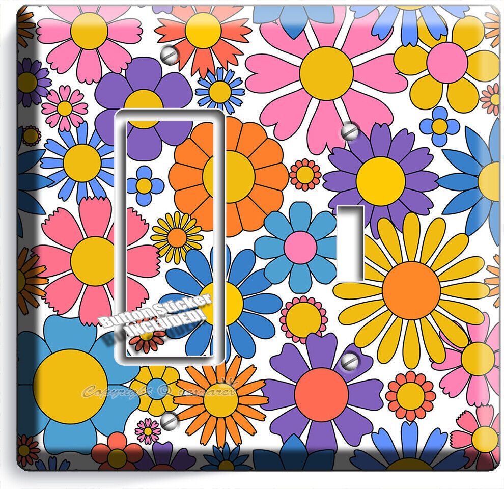 RETRO 70'S GROOVY FLOWERS LIGHT SWITCH OUTLET WALL PLATES FLORAL ROOM HOME DECOR