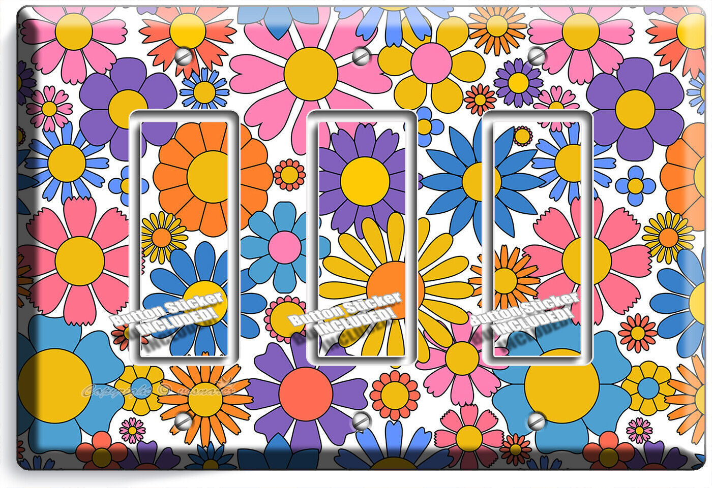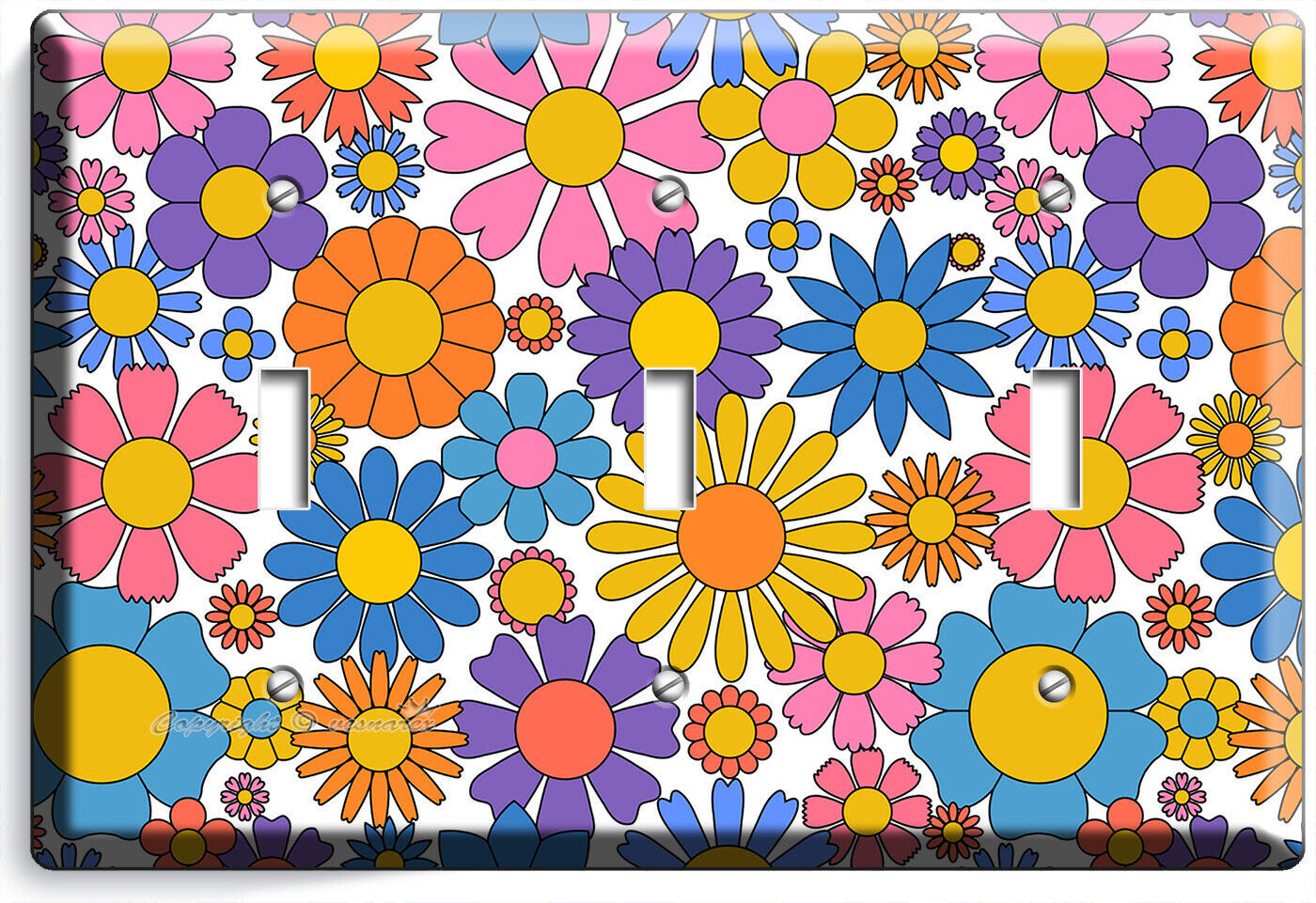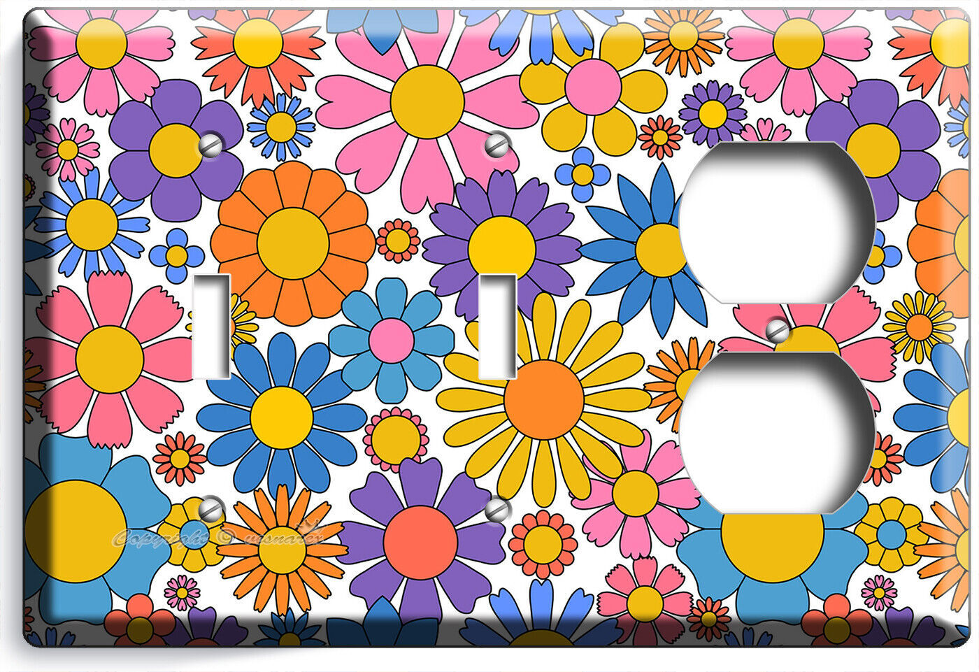 RETRO 70'S GROOVY FLOWERS LIGHT SWITCH OUTLET WALL PLATES FLORAL ROOM HOME DECOR