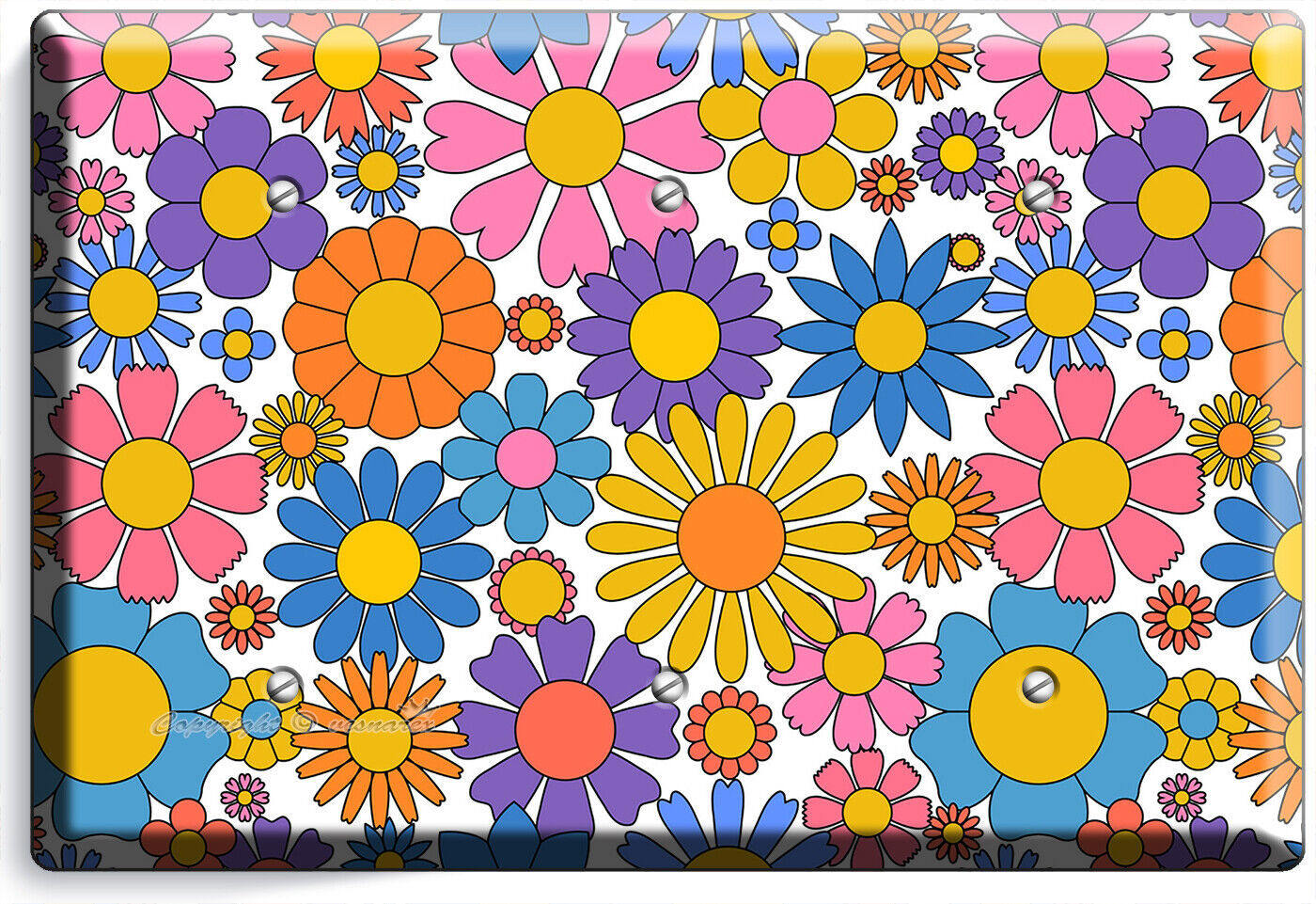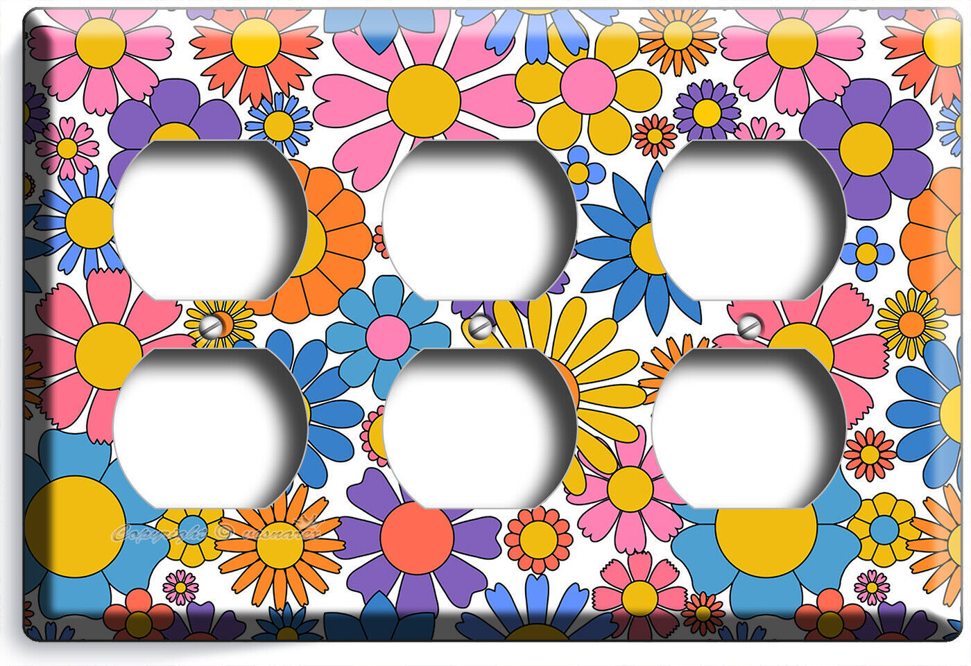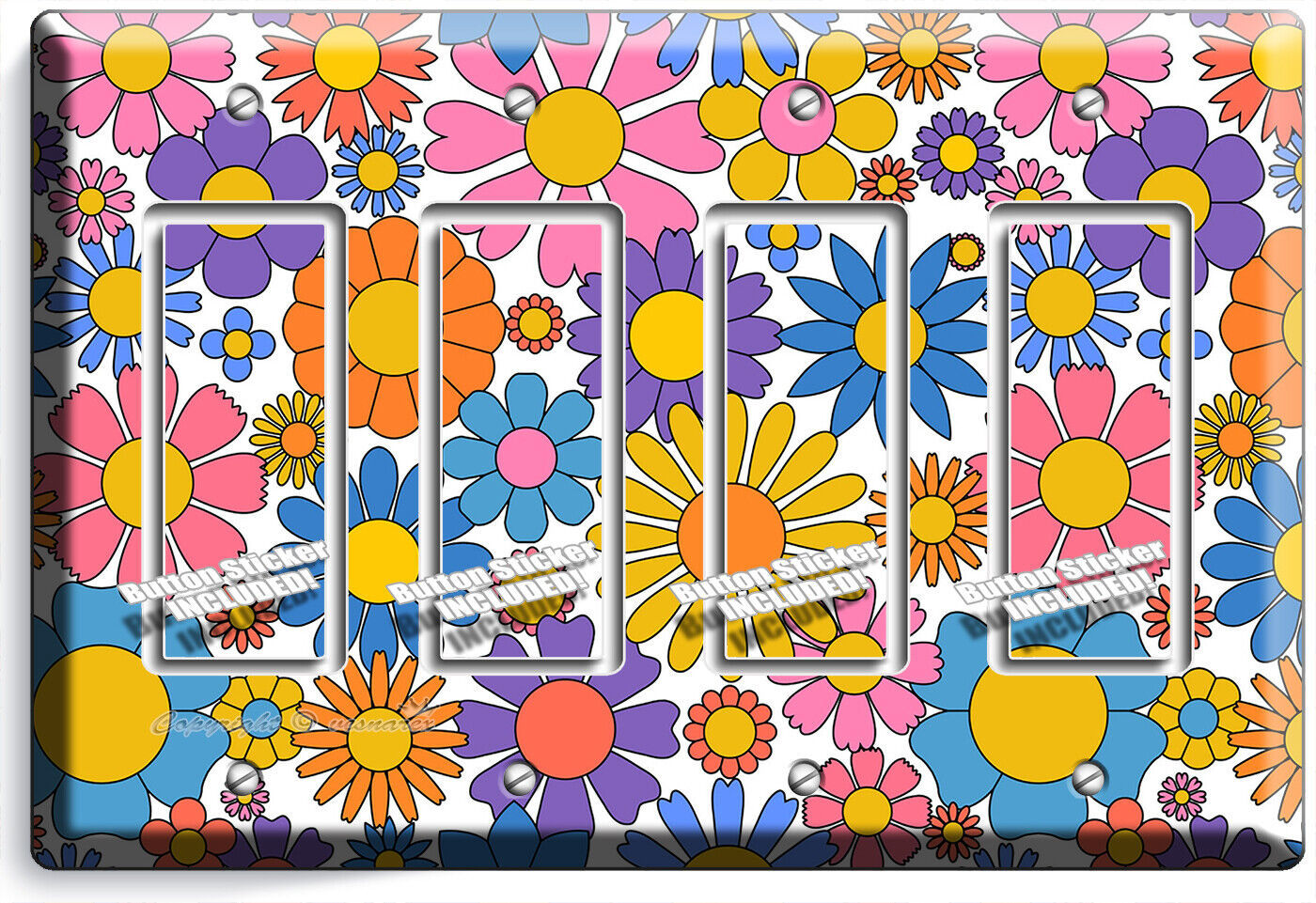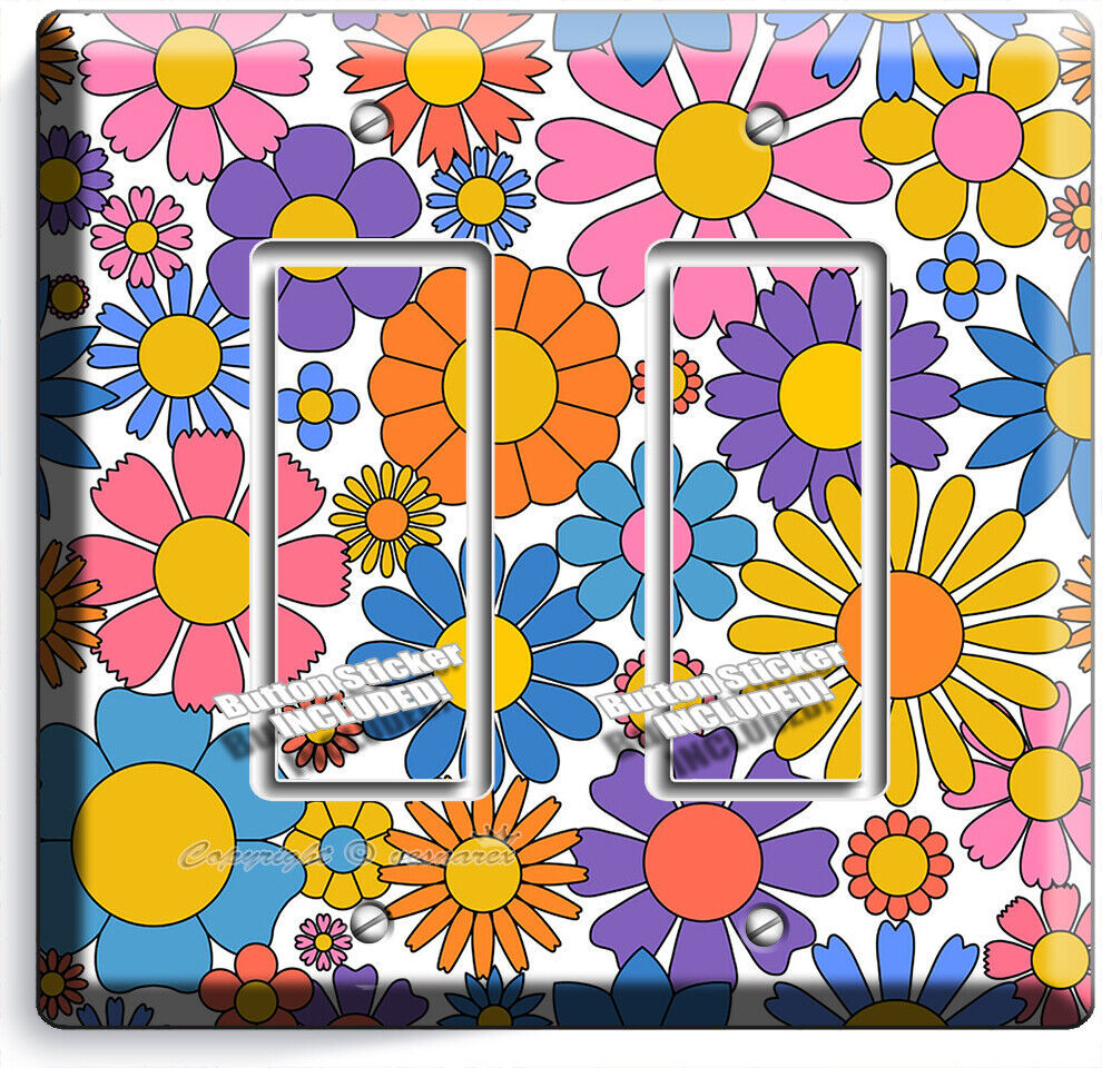 RETRO 70'S GROOVY FLOWERS LIGHT SWITCH OUTLET WALL PLATES FLORAL ROOM HOME DECOR