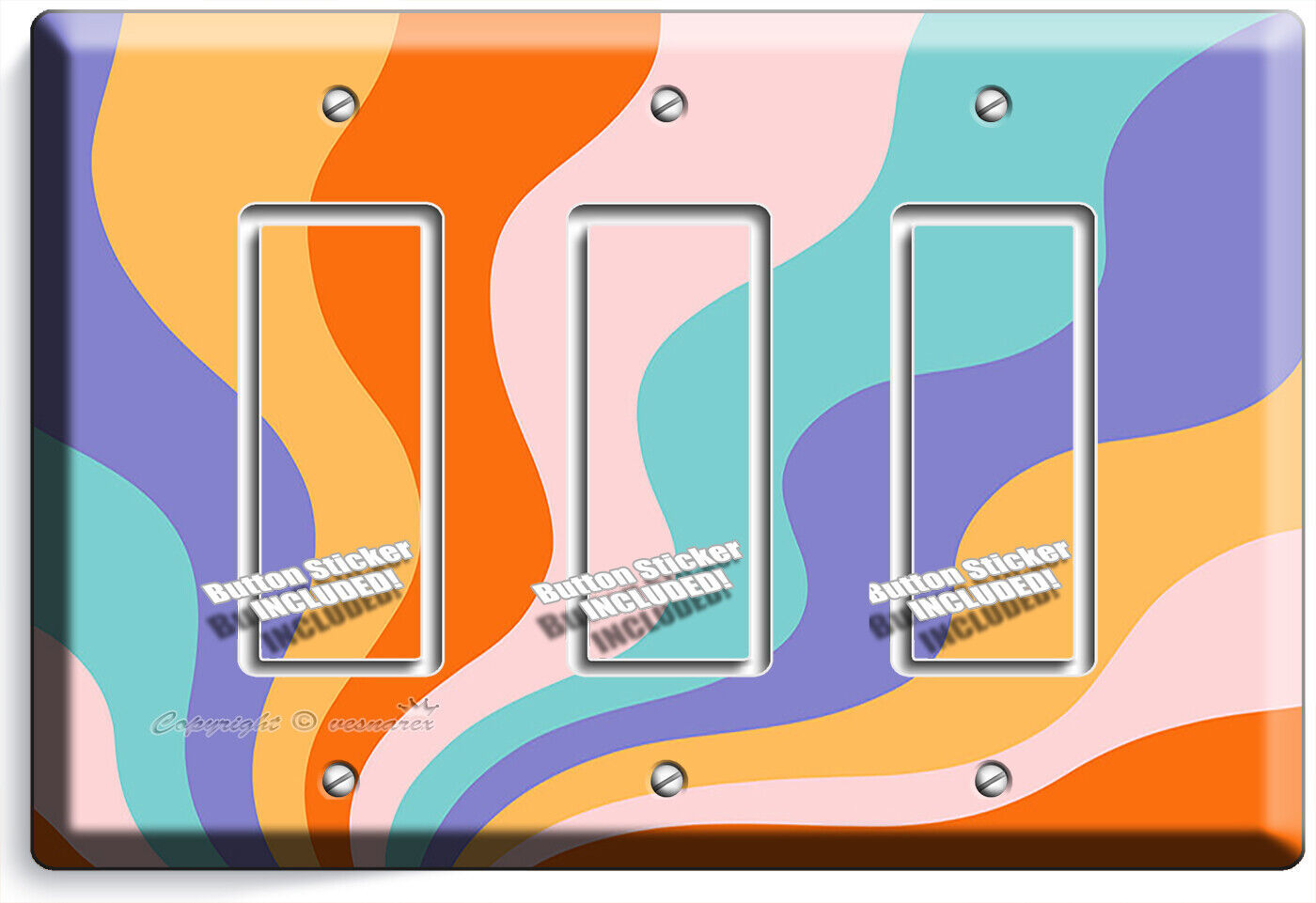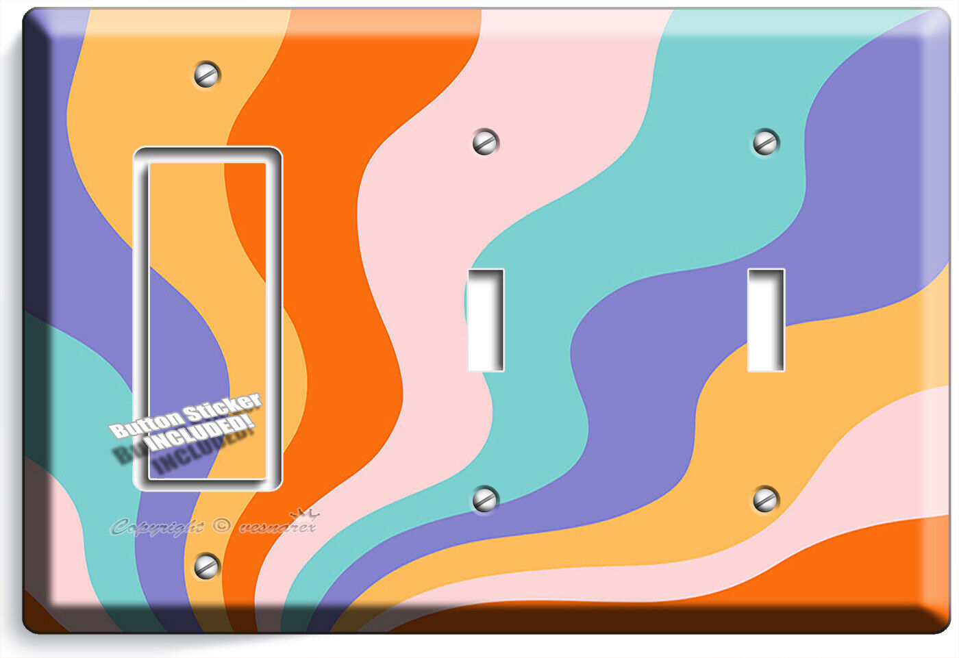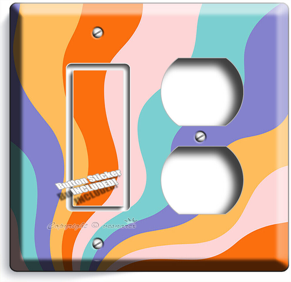 RETRO 70'S GROOVY WAVES LIGHT SWITCH OUTLET WALL PLATE FLORAL ROOM HOME HD DECOR