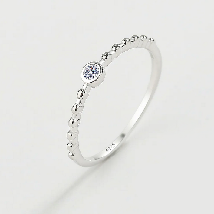 Delicate 925 Sterling Silver Simple Semi-Bead Zircon Ring - FAST SHIPPING!