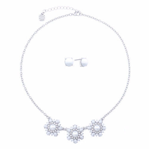 Monet Women's White Flower Necklace & Earring Set 17 Inch NEW Silver Tone