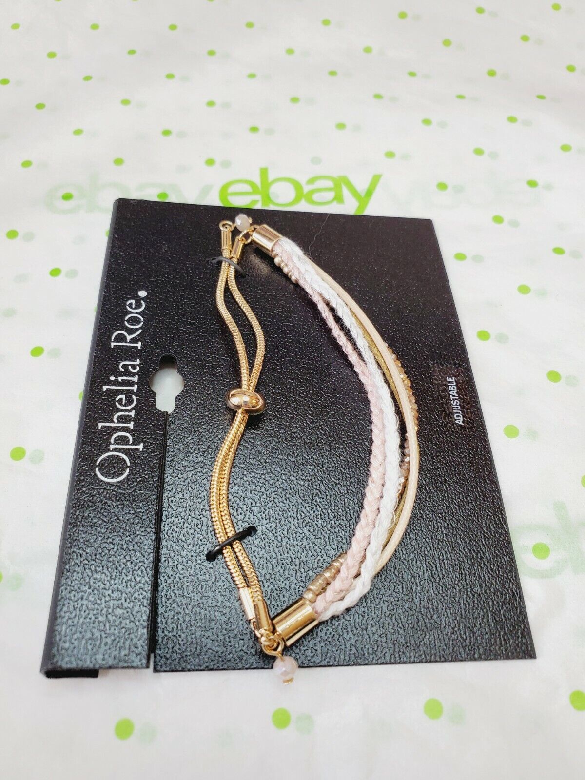 Ophelia Roe Women's Slider Bracelet Adjustable 7.5 Inch Beaded Braided Gold Pink