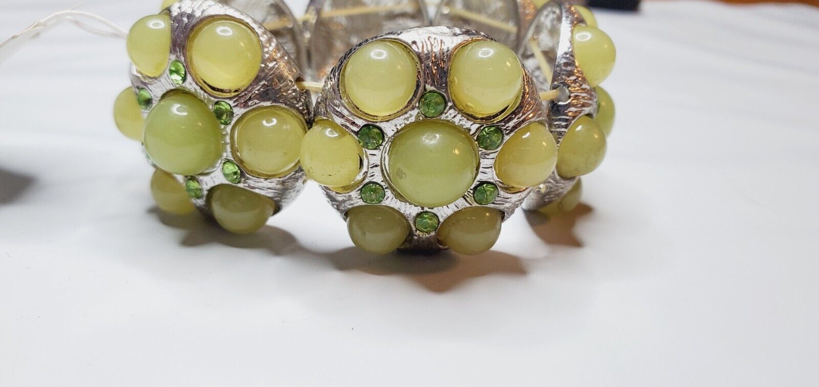 Erica Lyons Stretch Bracelet Silver W Green Domes & Green Rhinestones New #13