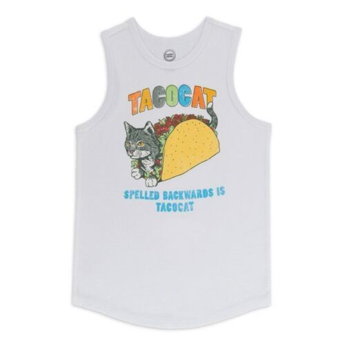 Wonder Nation Boys Tank Top SMALL (6-7) TACO CAT Tag Free White Tank New