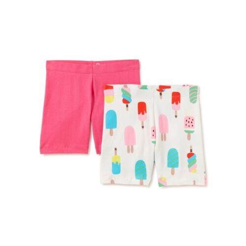 Wonder Nation Girls pull on bike shorts. New. **Photo may show a different size- I used the same photo for all sizes** 2 pair. Pink and white with ice creams.