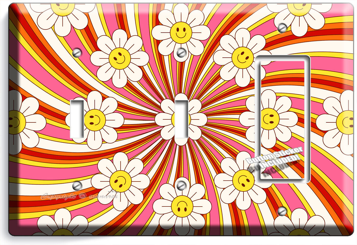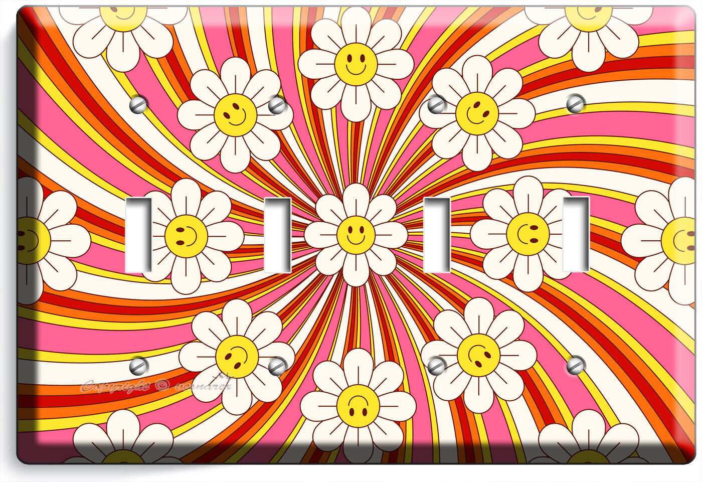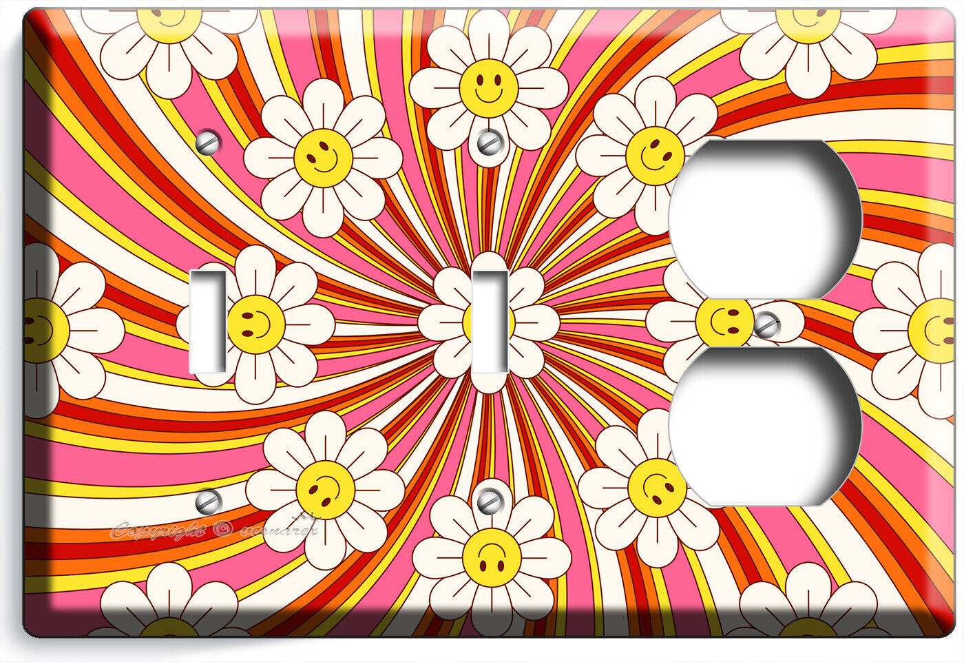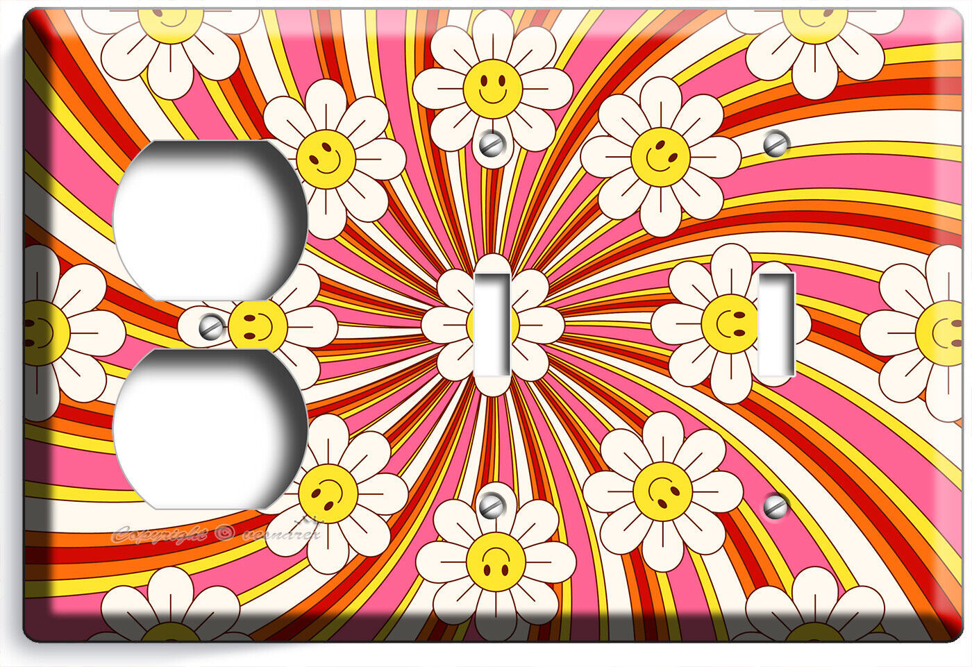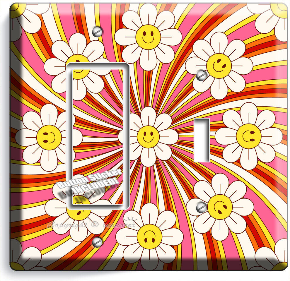 RETRO 70'S GROOVY FLOWER POWER LIGHT SWITCH OUTLET WALL PLATE VINTAGE HOME DECOR