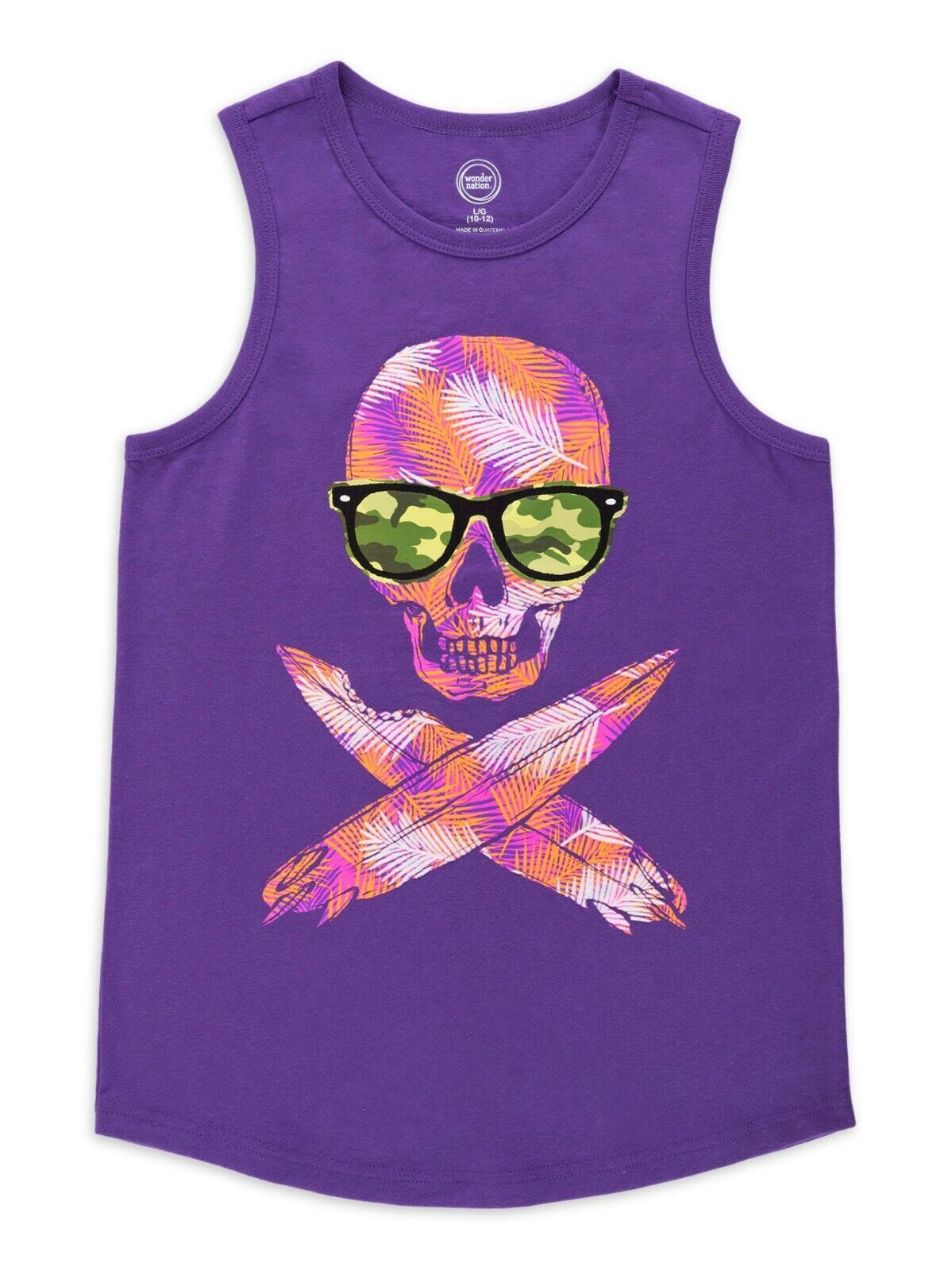 Wonder Nation Boys Tank Top MEDIUM (8) Purple W Skull Feathers Camo Glasses