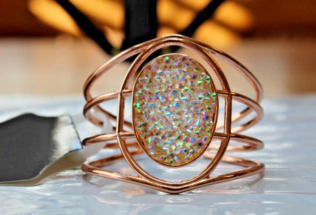 Rose Gold Metal Cuff Bracelet With Sparkle Rhinestone Top New