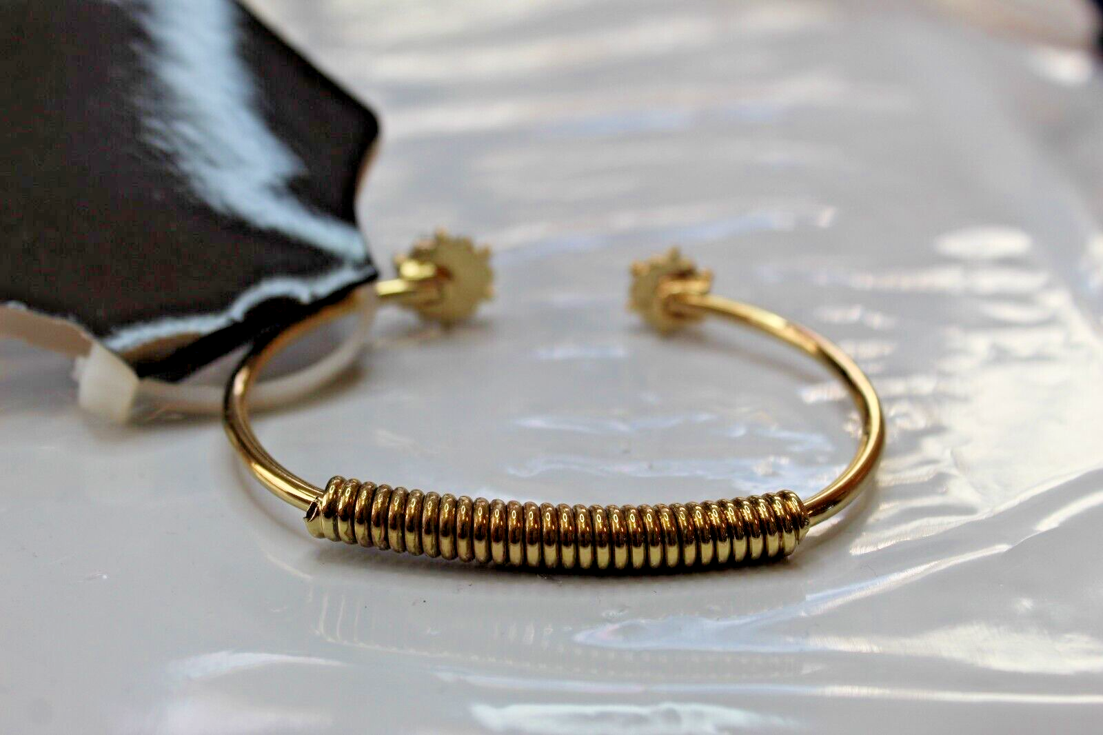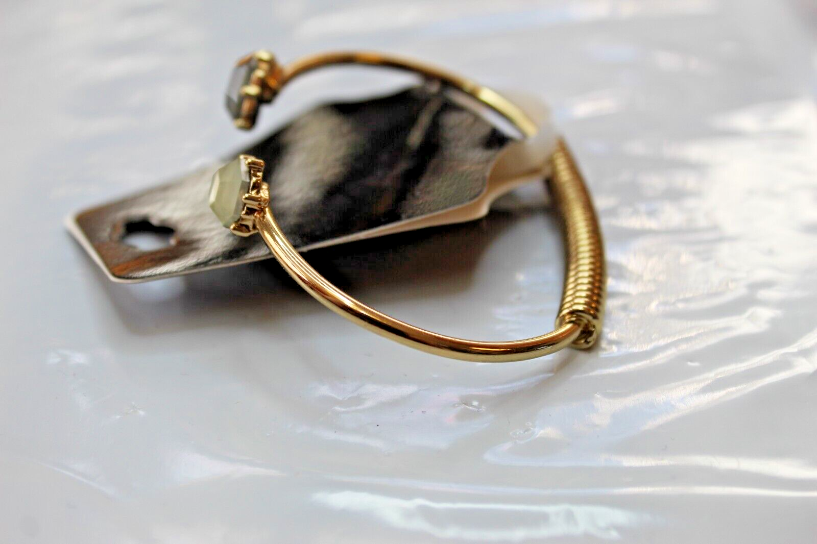 Gold Tone Metal Coil W Gemstones Cuff Women's Bracelet