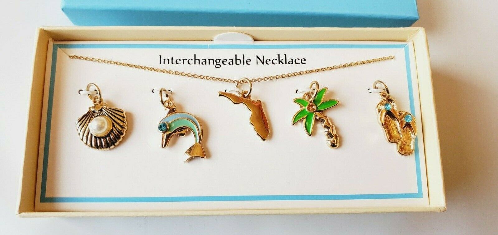 Bay Studio Interchangeable Necklace W 5 Pendants Shell Dolphin Palm Flip Flops