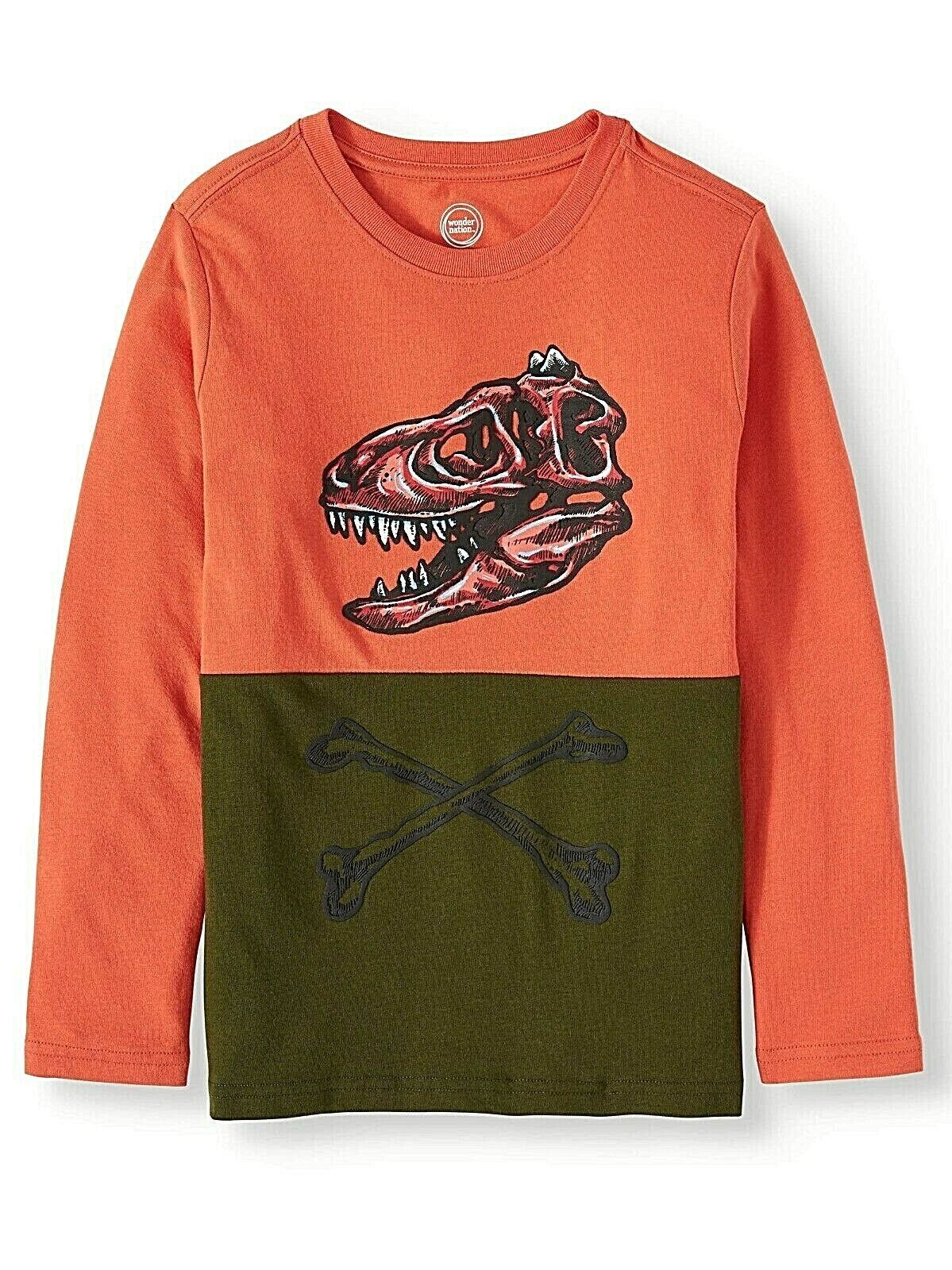 Wonder Nation Boys Long Sleeve Shirt X-Small (4-5) Orange Dinosaur Skull Bone