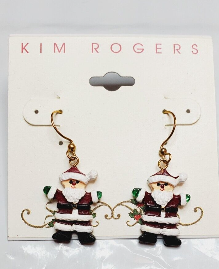 Kim Rogers Gold Tone French Wire Santa Clause Earrings New