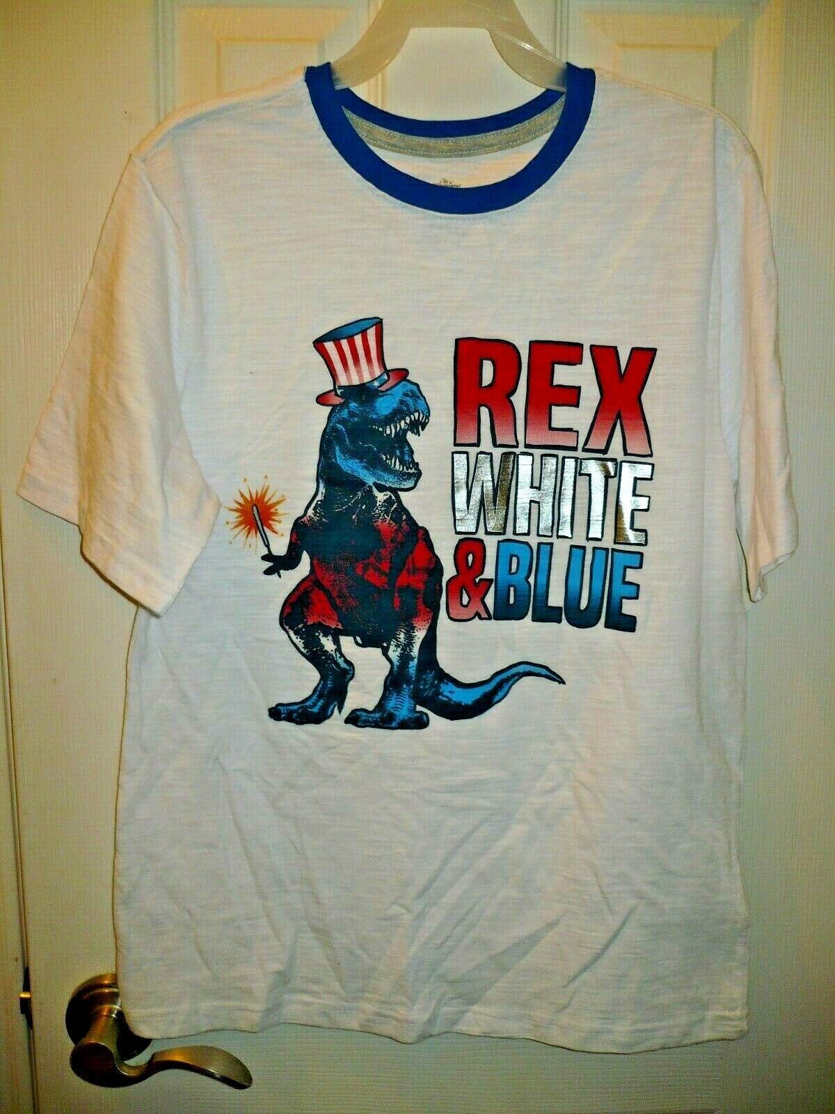 Patriotic Boys Short Sleeve Tee Shirt X-Large (14-16) Rex White & Blue Dinosaur