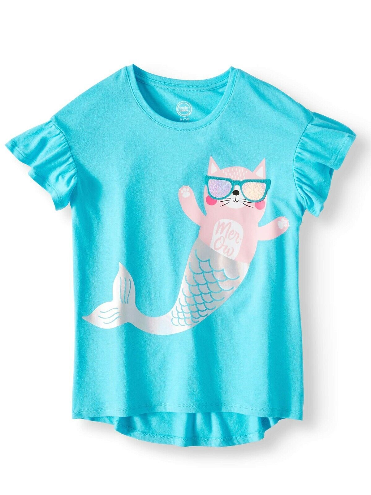 Wonder Nation Girls 3D Embellished Graphic T Shirt X-LARGE 14-16 Mermaid Cat