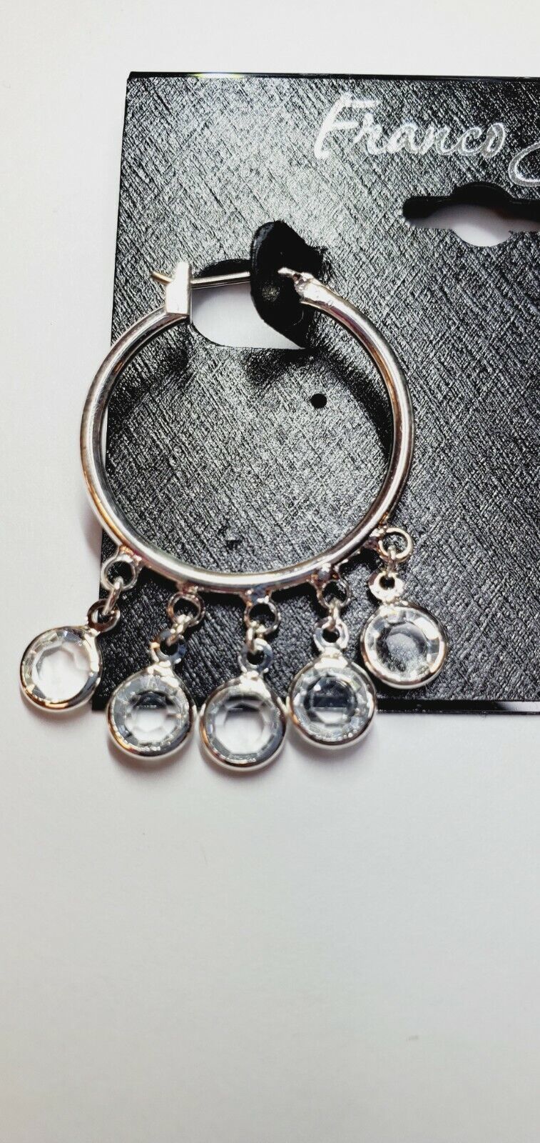 Franco Gia Silver Plated Hoop Earrings. New. Beautiful earrings. These sparkle like crazy. Pictures do not capture the beauty of these earrings. 1.5 inches tall. 1 inches wide.