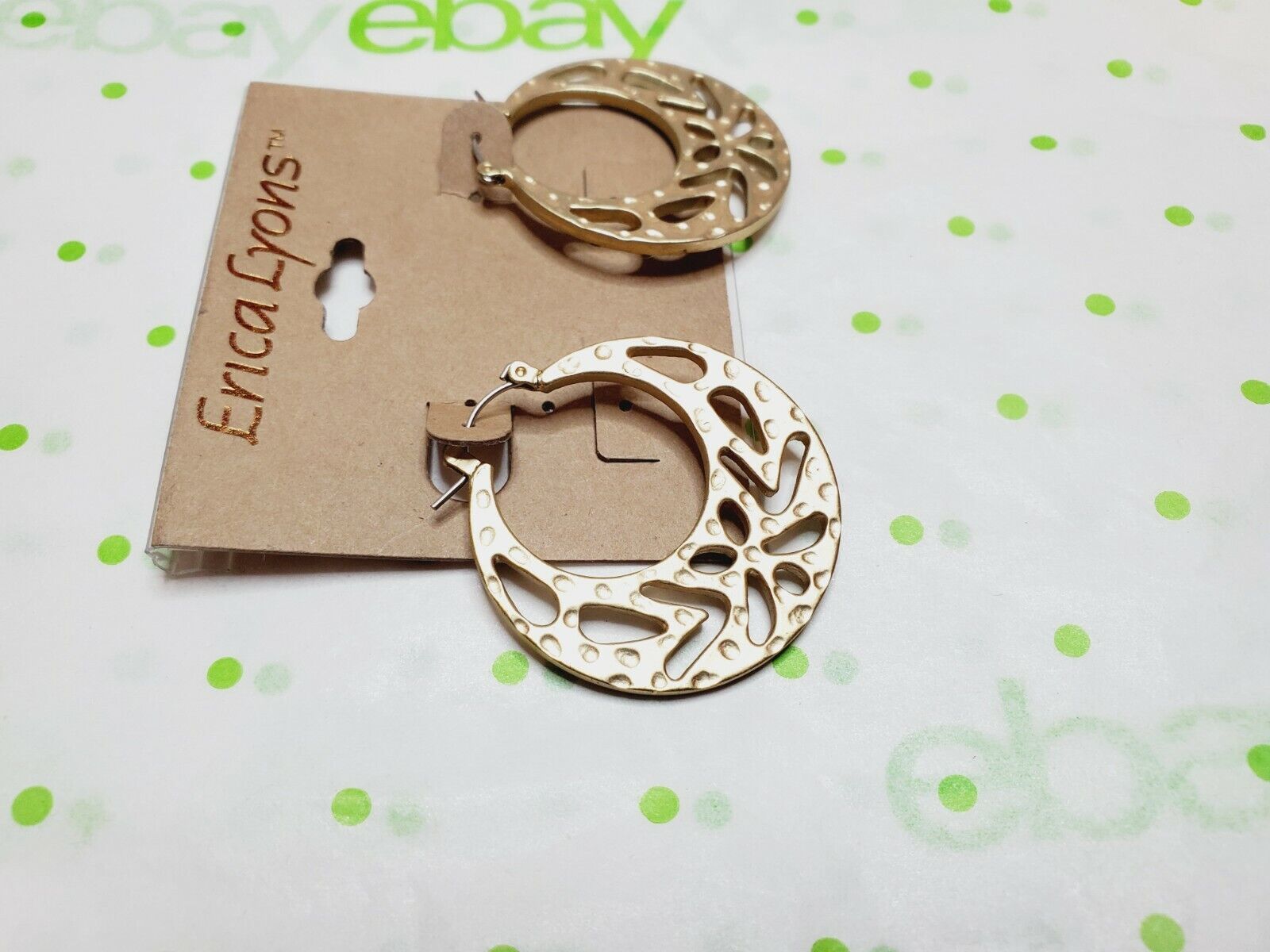Erica Lyons Gold Tone Drop Earrings Hammered With Cutout Detail Saddle Back