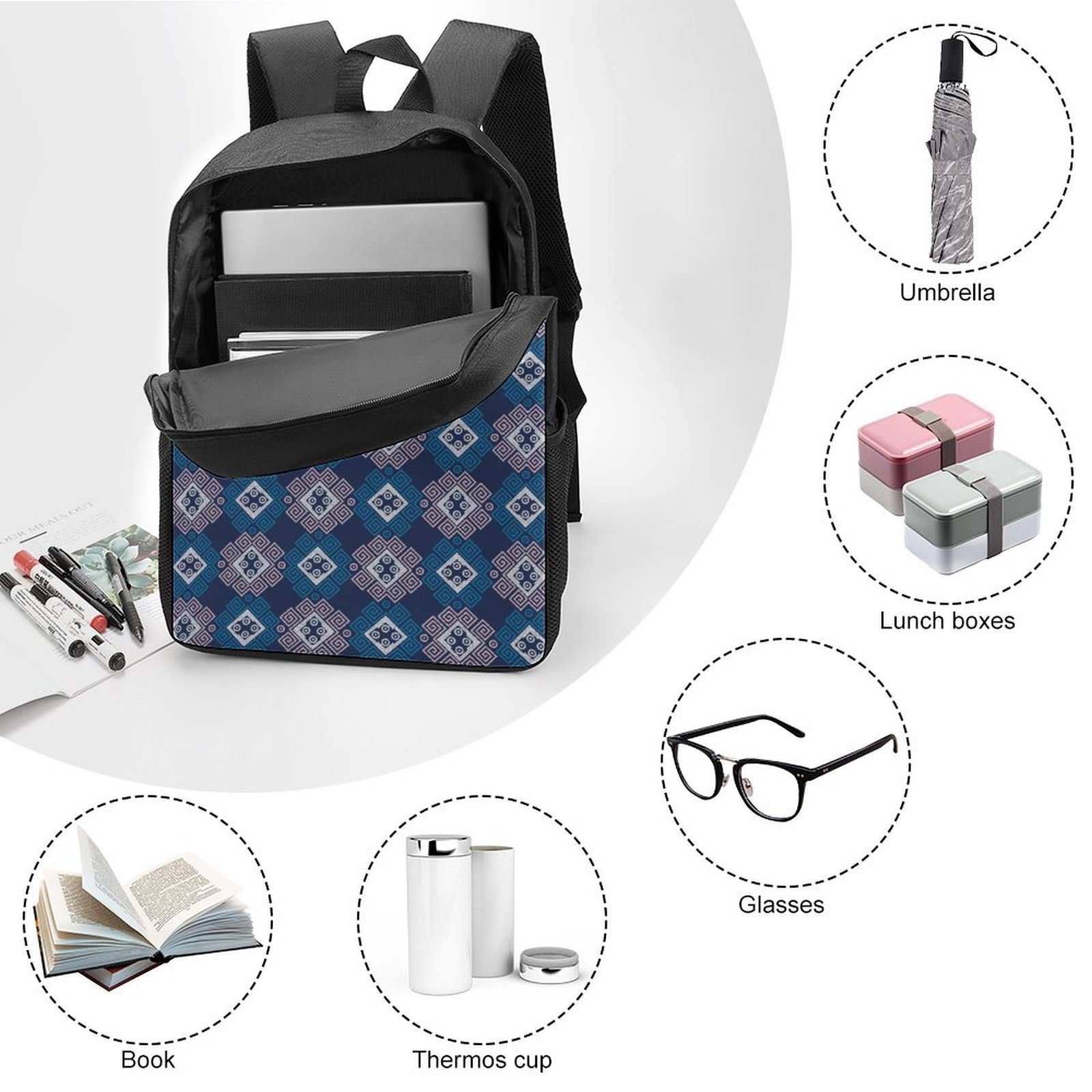 4, Practicality: double zipper design, side pockets can be placed in water cups, umbrellas and other items, sturdy and durable.