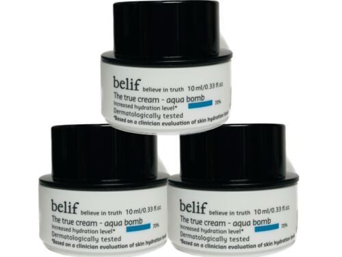 3x Belif The True Cream Aqua Bomb Moisturizer Travel Size Lot, 10ml/.33oz Each.