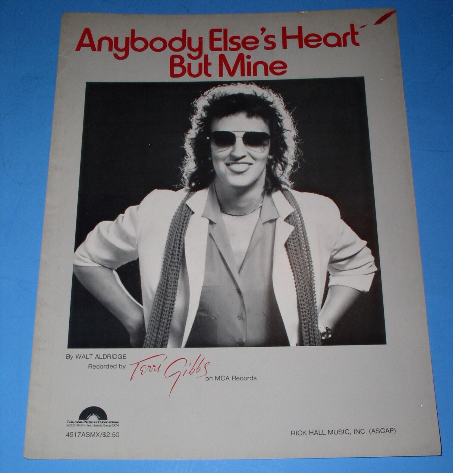 This is the original, vintage sheet music for the Terri Gibbs song, "Anybody Else's Heart But Mine". Rick Hall Music, Inc. A terrific item for the fan or collector.